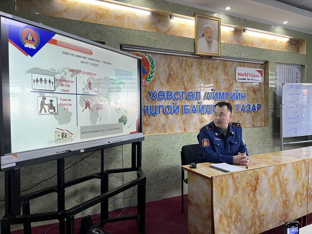 Сургалтад Хөвсгөл аймгийн 23 сум, 1 тосгоны Засаг даргын тамгын газрын гамшгийн асуудал хариуцсан мэргэжилтэн, ерөнхий боловсролын сургуулийн нийгмийн ажилтан, эмч, Гал түймэр унтраах, аврах 27, 46, 69, 73, 76 дугаар ангийн 50 гаруй ажилтан, алба хаагчид хамрагдсан юм.