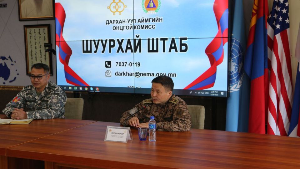 ОБЕГ-ын дэд дарга, бригадын генерал Б.Ууганбаяраар ахлуулсан ажлын хэсэг Дархан-Уул аймгийн Онцгой байдлын газарт ажиллалаа.