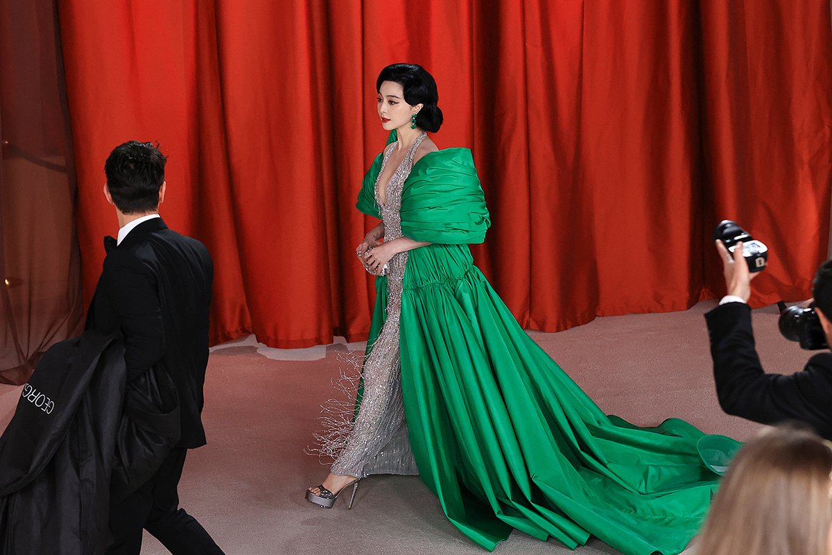 Таван жил олны өмнө гараагүй Хятадын алдартай жүжигчин Фан Бинбин Оскарын ёслол дээр шоу ертөнцөд эргэн ирлээ. Бинбин The Tony Ward брэндийн гялалзсан даашинзтай, дээгүүр нь ногоон өнгийн нөмрөгөөр гоёсон байлаа. Түүний үс засалт, хувцасны хэв маяг өнгөрсөн зууны 1950-иад оныг санагдуулж байлаа.