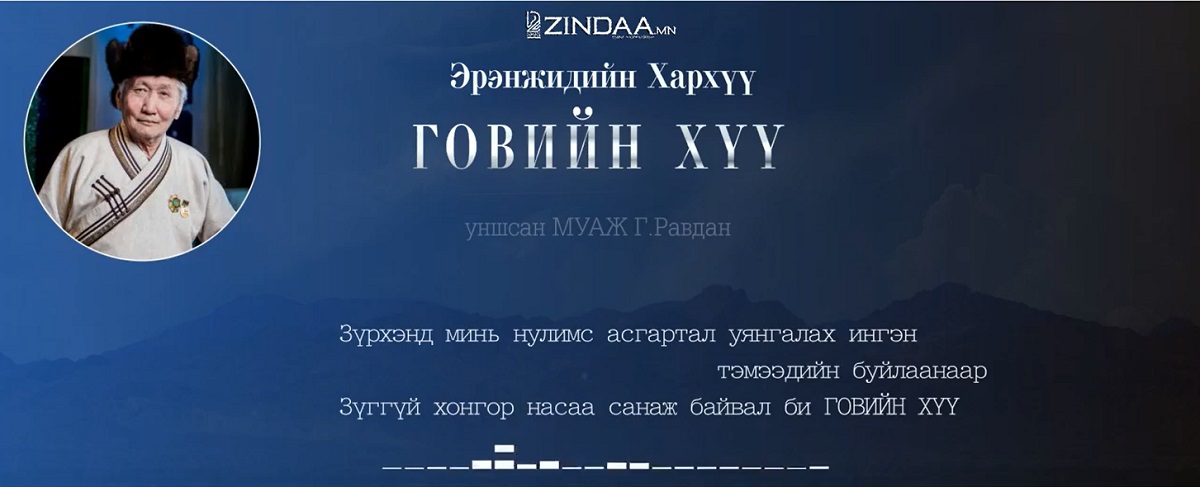 Зиндаа.мн энэ удаа та бүхэндээ Дэлхийн яруу найргийн өдөрт зориулан МЗЭ-ийн шагналт, яруу найрагч, Соёлын гавьяат зүтгэлтэн Эрэнжидийн Хархүүгийн "Говийн хүү" шүлгийг сонсогч танд хүргэж байна.
