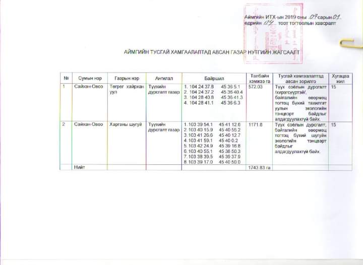 Гэтэл хайгуулын болон олборлолт явагдаагүй үлдсэн Дундговь аймгийн ганц сум болох Сайхан-Овоо суманд 2022 оны 11 дүгээр сараас эхэлж гадны хөрөнгө оруулалттай компани хайгуулын ажил явуулж эхэлсэн. Ингэхдээ аймгийн тусгай хамгаалалттай, тахилгатай хайрханд өрөмдлөг хийсэн. Компанийн зүгээс метан хийн олборлох зорилгоор хайгуулын ажил хийж байгаа гэж тайлбарласан. Гэвч тусгай зөвшөөрлөө авахдаа ч хууль бус бичиг баримт бүрдүүлсэн байж болзошгүй нөхцөл байдал тогтоогдсон гэнэ.