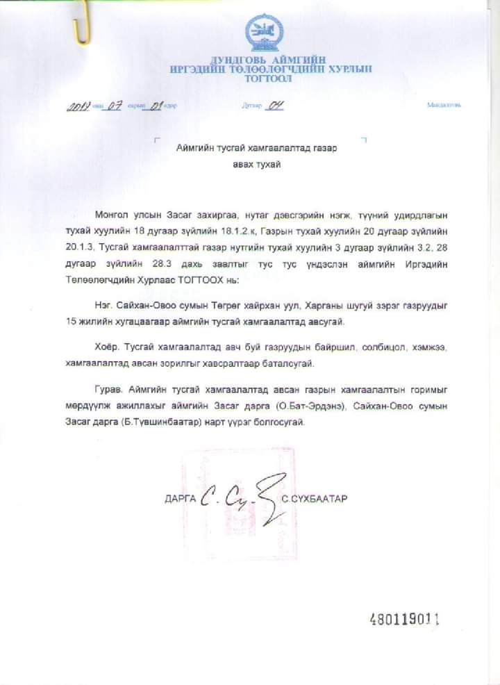 Уул уурхайг дагасан олон сөрөг үр дагавар гарахаас сэргийлж байгаа хөдөлгөөнд Сайхан-Овоо сумаас гадна Дундговь аймгийн бүхий л сумын иргэд нэгдсээр байна. Уул уурхайн яам холбогдох байгууллагууд нутаг орноо хамгаалах иргэдийн сэтгэлийг дэмжиж, анхааралдаа авч ажиллахыг хүсжээ.