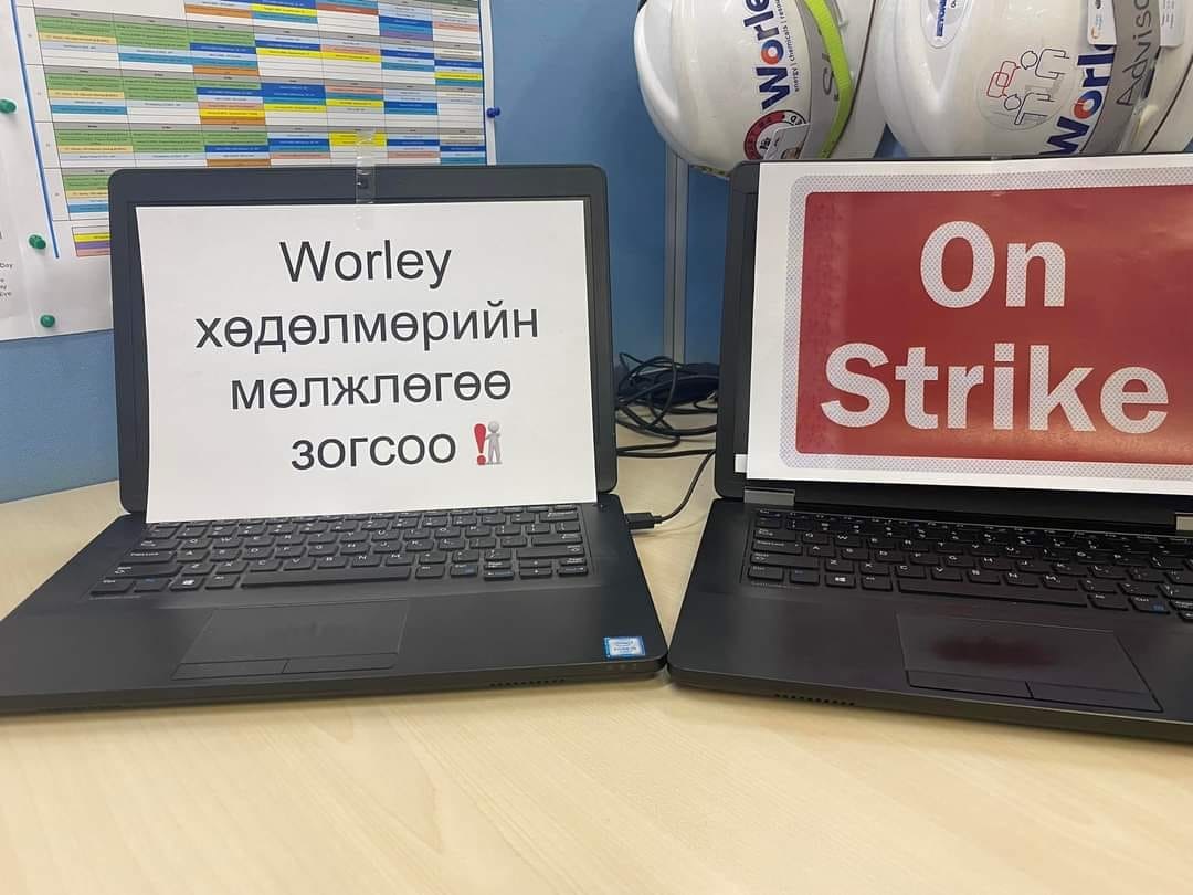 "Оюу толгой" төслийн гүний уурхайн ажил гүйцэтгэгч "Worley инженеринг" ХХК-ний ажилчид, уурхайчид уурхайн талбар дээр буюу ажлын байрандаа ажил хаялт хийж, өнөөдөр /2023.04.02/-ийн байдлаар гурав дахь өдрөө үргэлжилж байна.