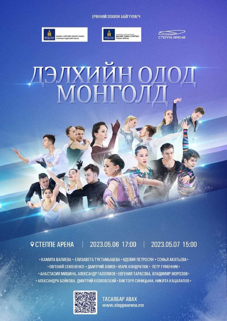 Ирэх тавдугаар сарын 6, 7-нд "Steppe Arena"-д ОХУ-ын шилдэг уран гулгагчдын шоу тоглолттой. Дэлхийн шилдгүүдийг бид дэргэдээс нь, Монгол Улсад үзэх, харах боломжийг БТСУХ, ОНБТСҮХ- санаачлан бүрдүүлсэн. Уран гулгалтын шоу, үзүүлэх тоглолтод оролцох 16 тамирчны нэрийг сонирхуулбал