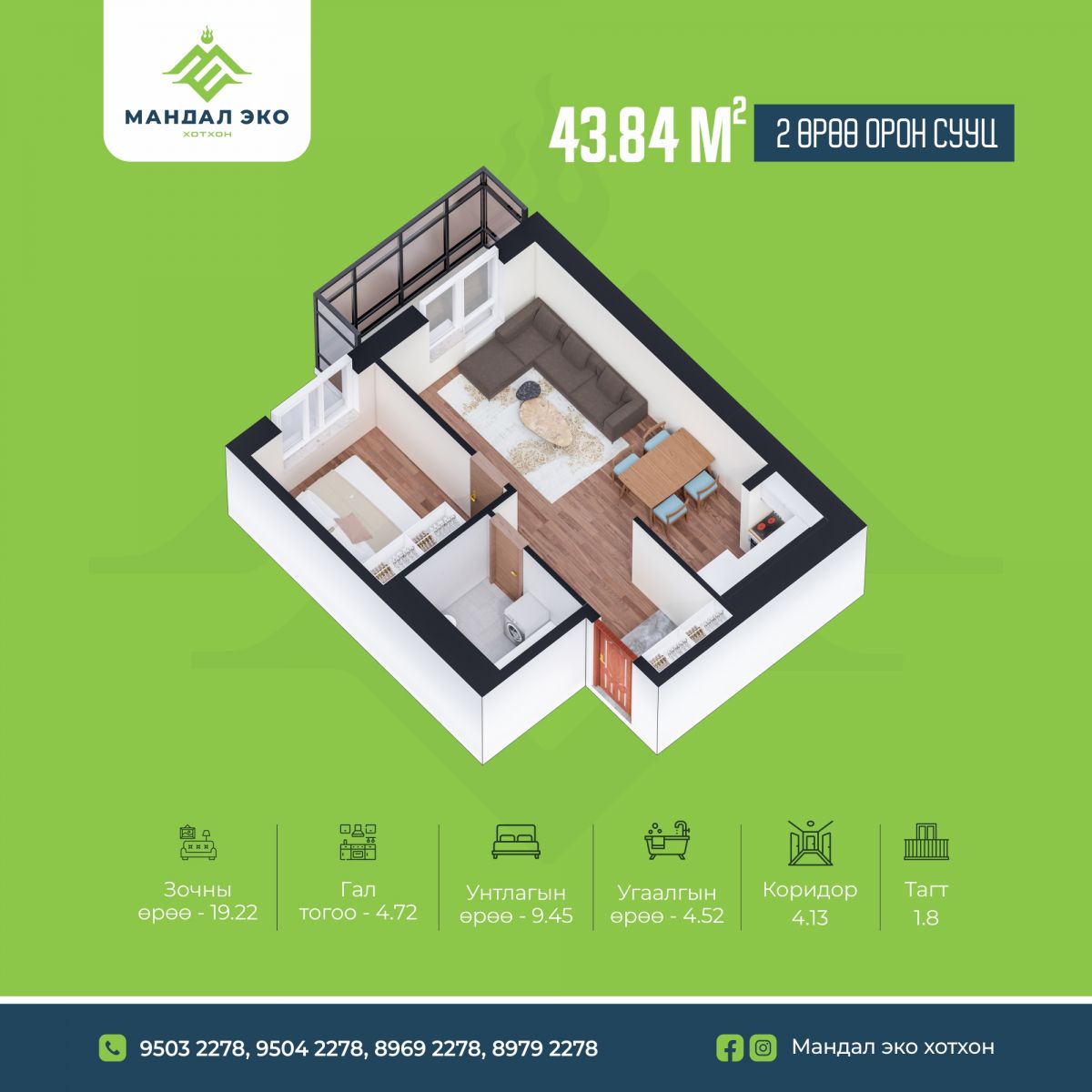 Тус хотхон иргэддээ 1-3 өрөөний сонголтыг олгож байгаа бөгөөд төсөл эхэлж байхад захиалгаа өгвөл илүү хямд, захиалгын таатай нөхцөлийг санал болгож байгааг мөн хэлэв.