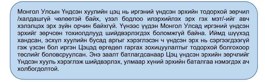 I.ХҮНИЙ ЭРХИЙН БАТАЛГААГ ХАНГАХ