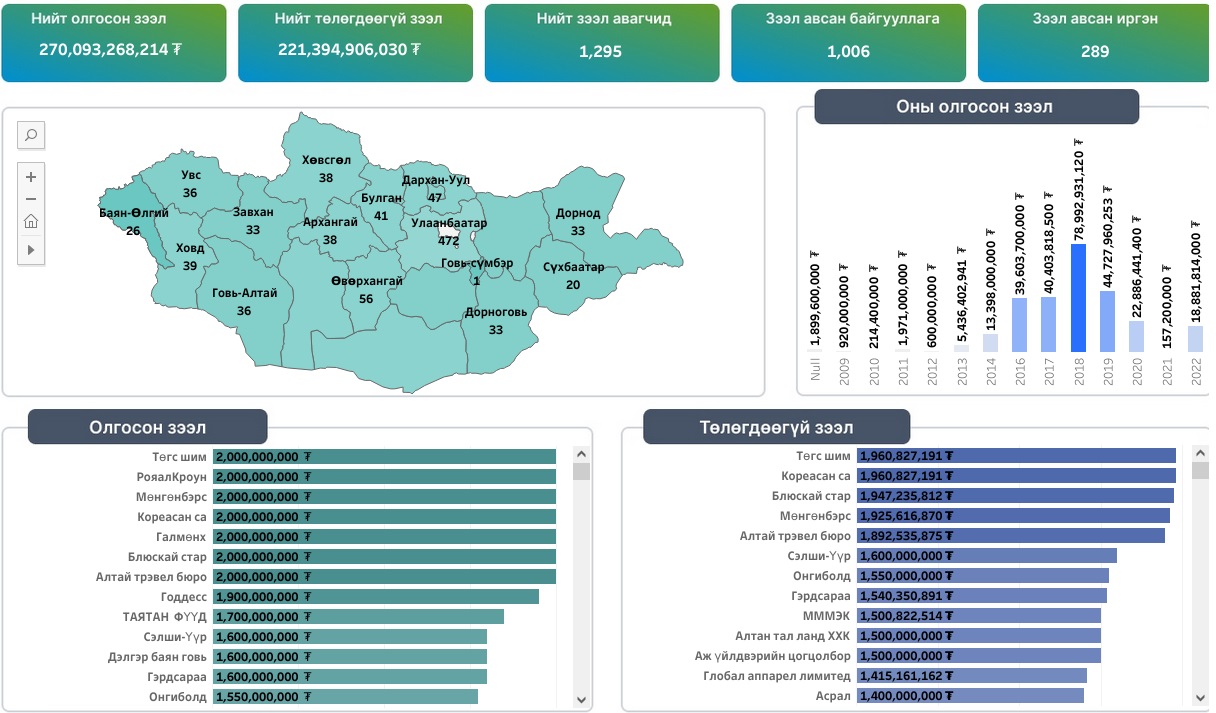 ЖДҮХС 2008 оноос хойш 270 тэрбум төгрөгийн зээлийг 1295 хүн, хуулийн этгээдэд олгожээ. Үүнээс өнөөдрийн байдлаар 221.4 (221,394,906,030) тэрбум төгрөгийн зээл төлөгдөөгүй байна.
