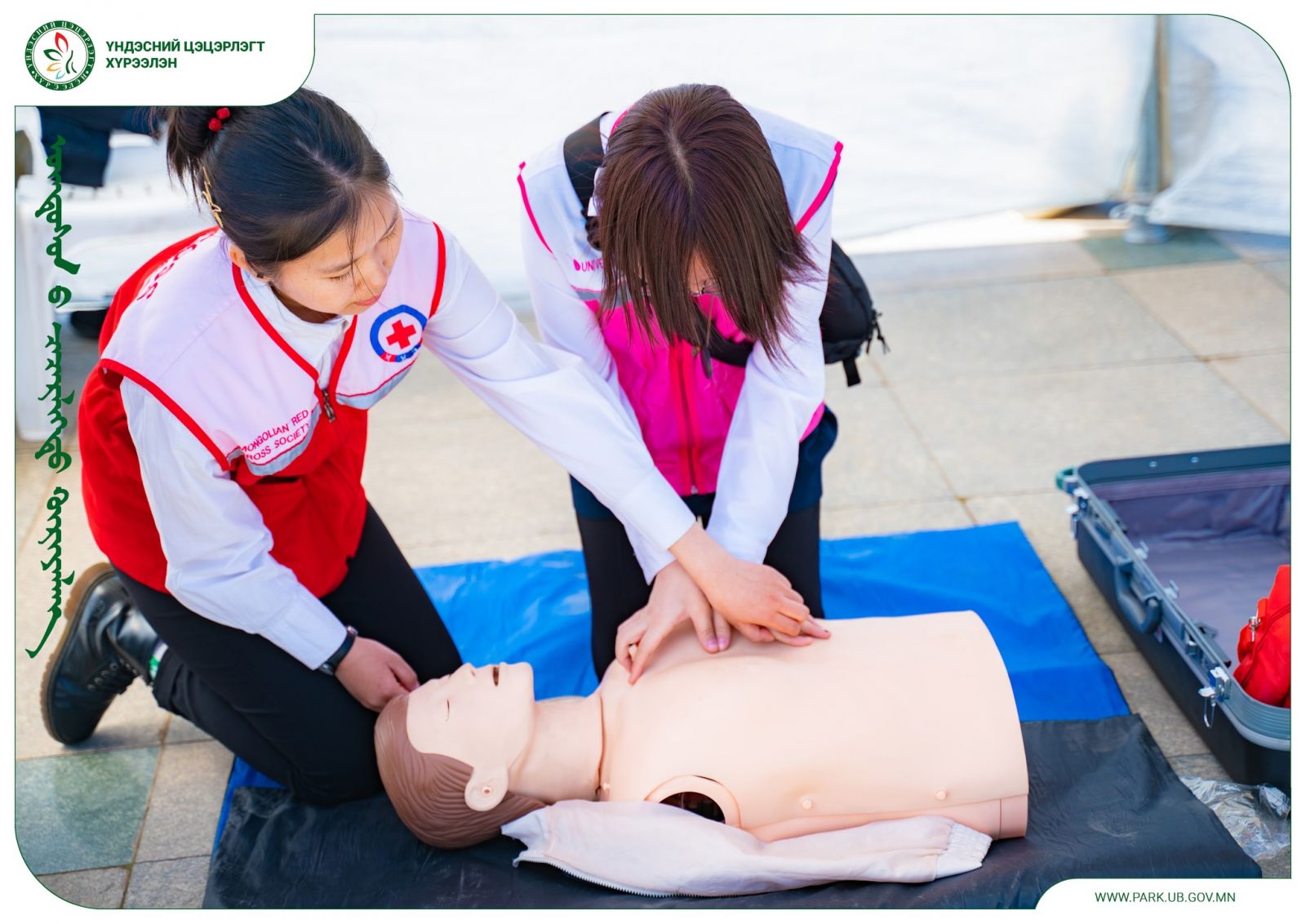 МУЗН-ын Эрүүл мэнд, нийгмийн хамагааллын газрын ажилтан, анхны тусламжийн сургагч багш Э.Лхагвасүрэн “МУЗН хүмүүнлэгийн чиглэлээр ямар тусламж, үйлчилгээг хүмүүст үзүүлдэг вэ гэдгийг өдөрлөгөөр таниулан сурталчилдаг. Бид анхны тусламжийн ач холбогдлыг үзүүлэн хэрэгсэл дээр танилцуулж байгаа. Анхны тусламжийн ач холбогдлыг иргэд сайн мэдэхгүй байх, эмнэлгийн тусламжтай андуурах, төдийлөн чухалчилж үздэггүй тал байдаг. Манай орон осол гэмтлийн тоо өндөр. Тэгвэл ослын талбайд осолд өртсөн хүний дэргэд хамгийн ойр байгаа хүн анхны тусламж үзүүлэгч юм. Тухайн хүн тусламж үзүүлэх мэдлэггүйгээс эсвэл тусламжийг буруу үзүүлснээс хамааран шарх гэмтэл нь хүндрэх, цаашлаад амь насаа алдах үр дагаварт хүргэдэг. Иймд бид анхны тусламжийн үндсэн суурь болсон цээжний шахалт, хиймэл амьсгалын тусламжийг хэрхэн хийх вэ гэдгийг хүүхэд залуус, иргэдэд сурталчиллаа” гэв.