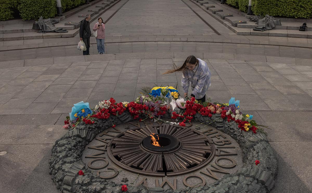 Украинд Ялалтын баярыг тэмдэглэхийг албан ёсоор хориглосон ч Киевийн оршин суугчид өчигдөр болсон Ялалтын баяраар Аугаа эх орны дайны хөшөө дурсгалуудад цэцэг тавьжээ.