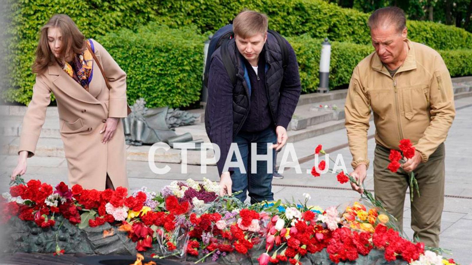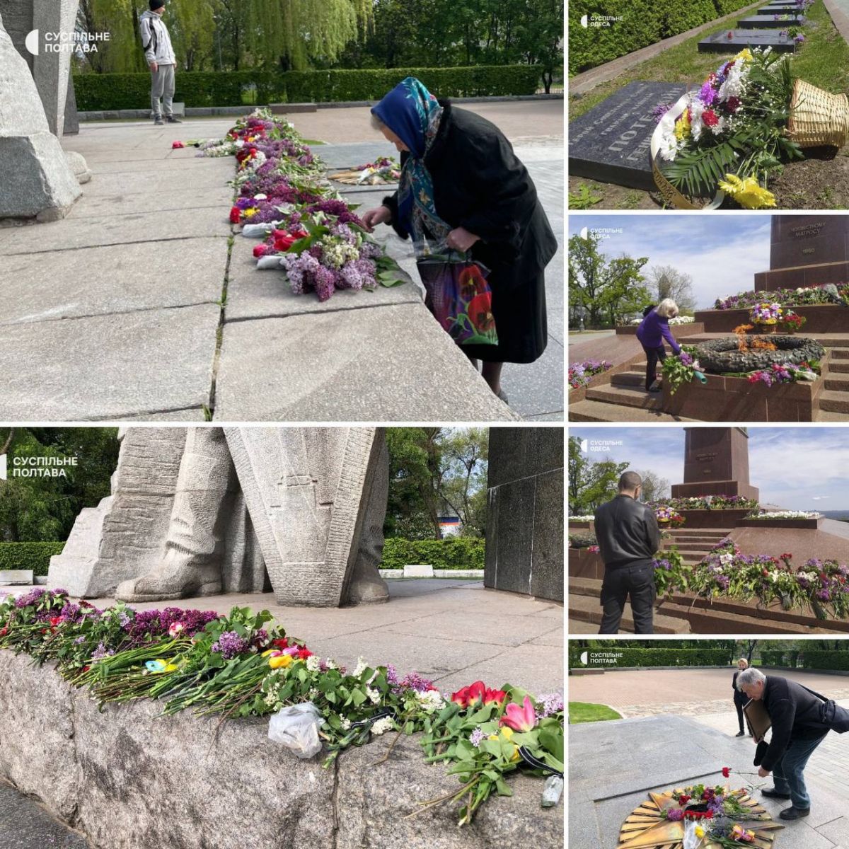 Киевийн оршин суугчид, ахмад дайчдыг хөшөө дурсгалуудад цэцэг өргөх үеэр тус газруудыг цагдаа нар хамгаалж байжээ.