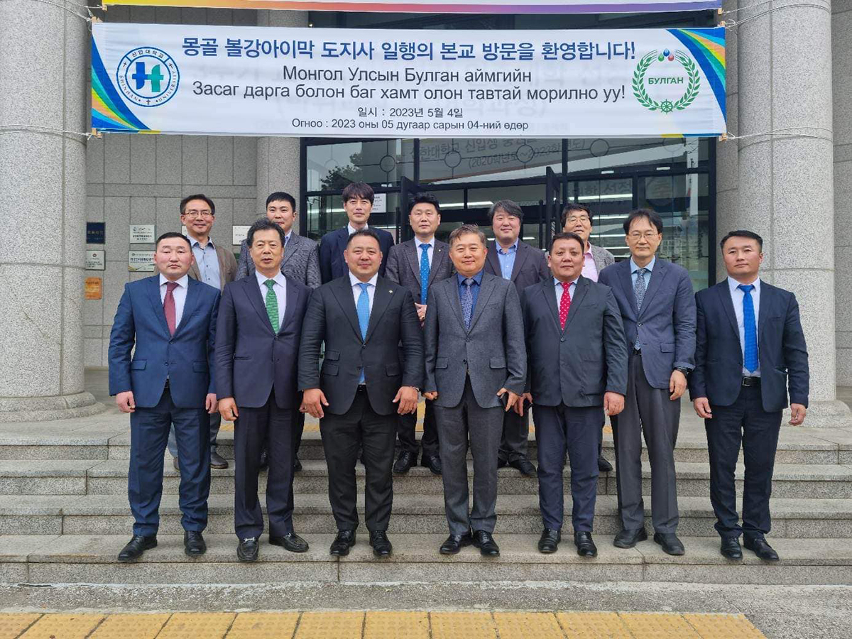 Булган аймгийн Засаг дарга Б.Ариун-Эрдэнэ, Боловсрол, шинжлэх ухааны газрын дарга Ж.Ганболд, Хутаг-Өндөр сумын Засаг дарга П.Лхагва-очир, Сайхан сумын Засаг дарга Д.Сансар-очир нарын хамтаар Кёнги аймгийн Шинхан их сургуульд албан томилолтоор ажиллаж байна.