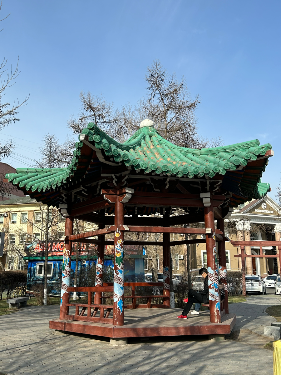Хотын төвд хятад стилийн саравч, модтой цэцэрлэг барьжээ. Энэ нь хотын иргэдэд чимээгүйд сууж, амрах, юм бодох, эсвэл өдрийн хоолоо идэхэд тустай.