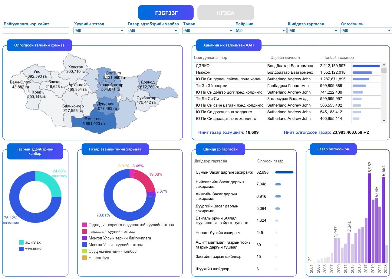 Одоо бол улсын хэмжээнд аймгийн Засаг дарга нар болон нийслэлийн Засаг дарга нарын олгосон газар, сумын Засаг дарга нарын олгосон газруудын хаана, хэн, ямар газар эзэмшиж байгаа нь нээлттэй боллоо.