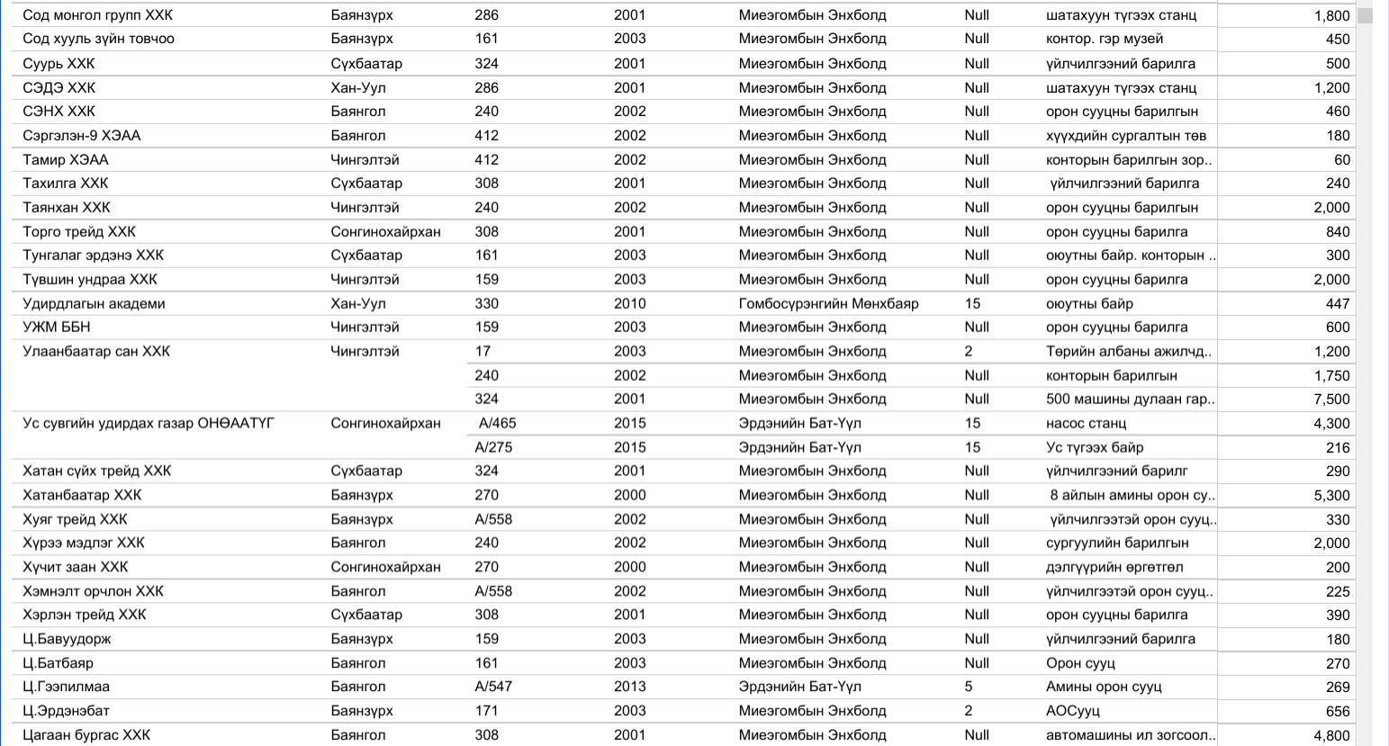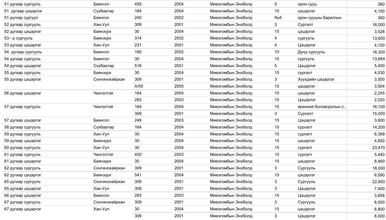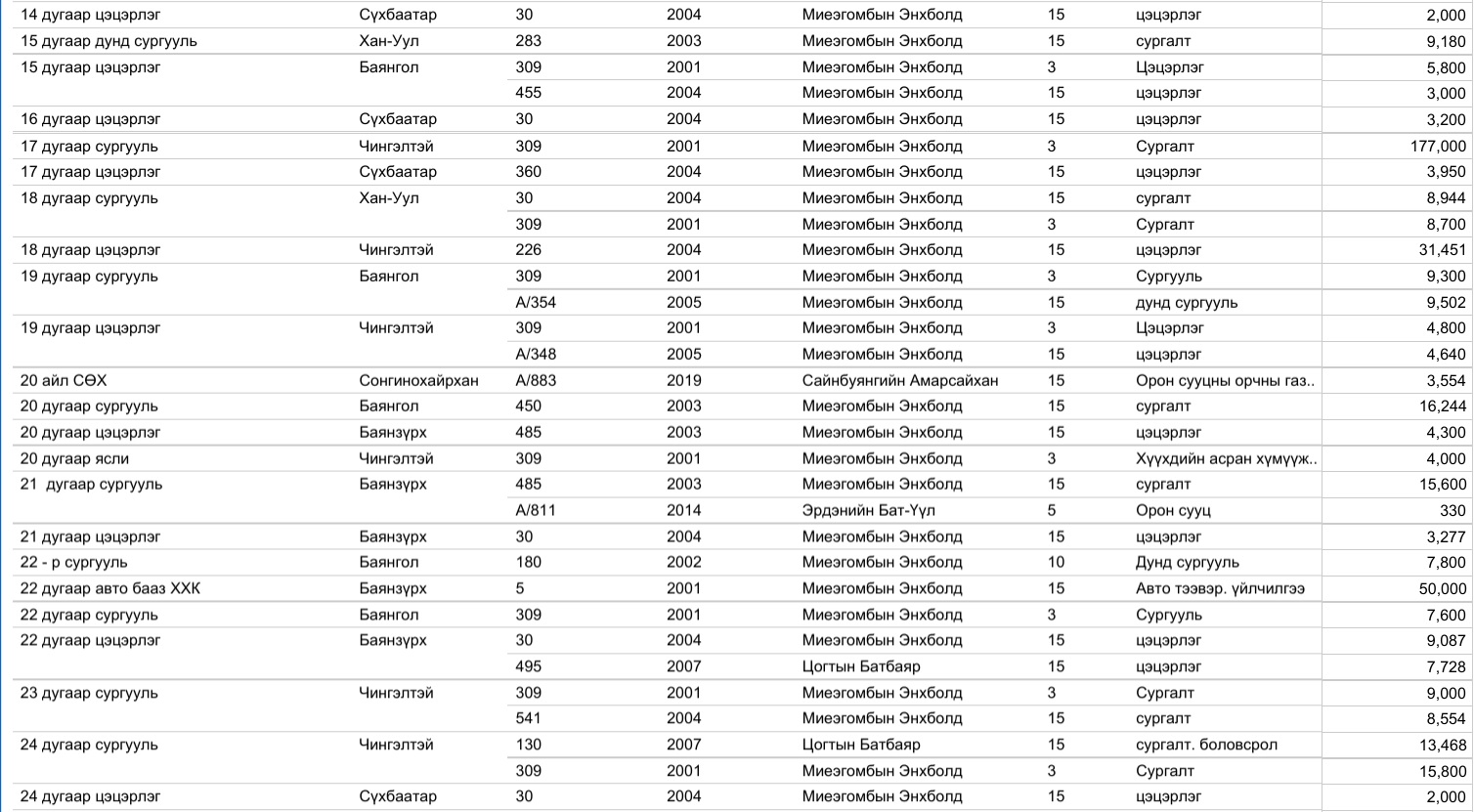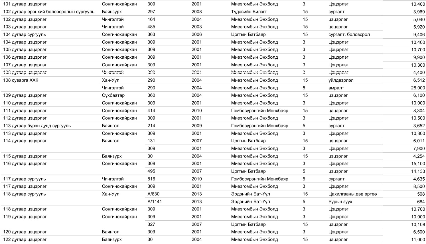 Харин 2020 оны арванхоёрдугаар сарын 31-ээс өнөөдрийг хүртэлх нийслэлийн газар олголтын мэдээллийг, дүүргийн үе үеийн Засаг дарга нарын мэдээлэлтэй нэгтгэж байшуулах ажлыг зургаадугаар сарын 01-ээс өмнө нэмж хийнэ.