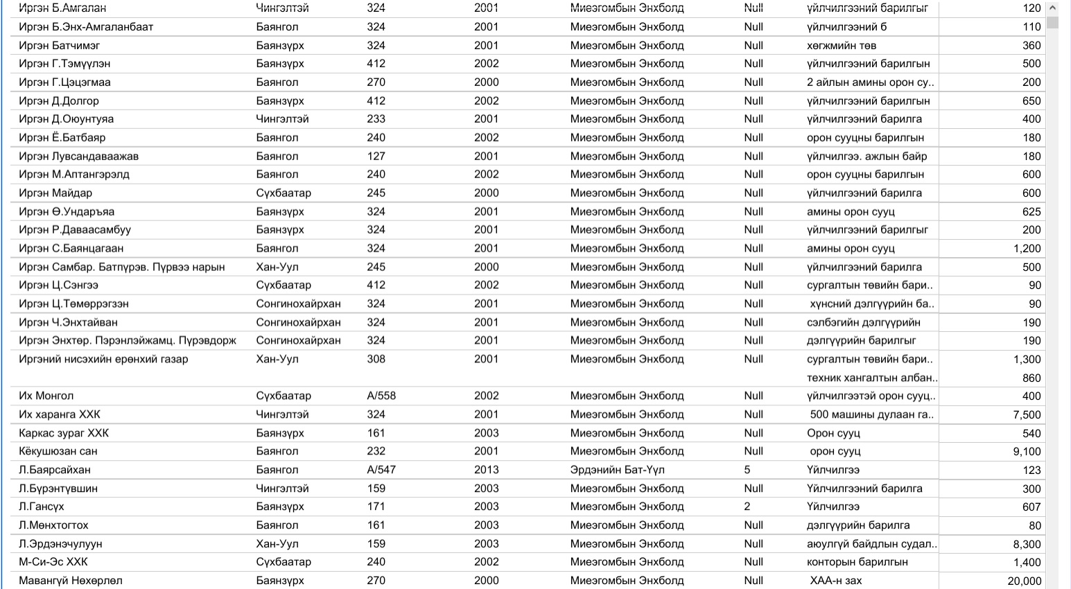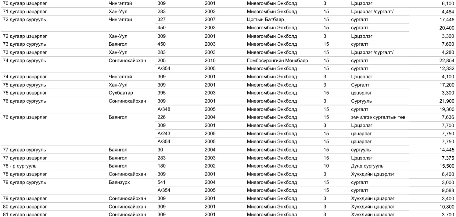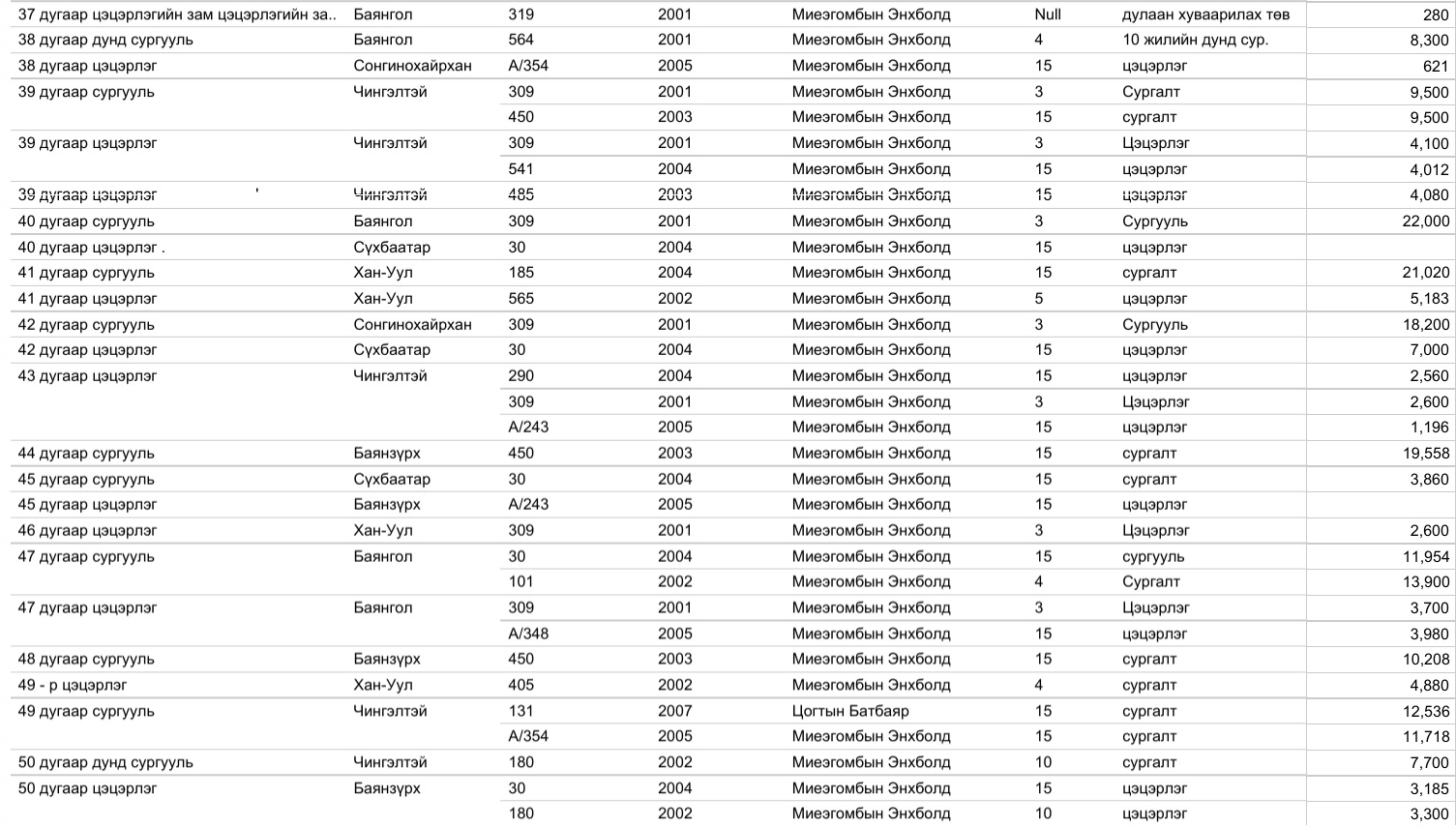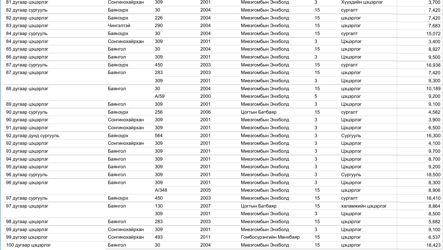 Харин 2020 оны арванхоёрдугаар сарын 31-ээс өнөөдрийг хүртэлх нийслэлийн газар олголтын мэдээллийг, дүүргийн үе үеийн Засаг дарга нарын мэдээлэлтэй нэгтгэж байшуулах ажлыг зургаадугаар сарын 01-ээс өмнө нэмж хийнэ.