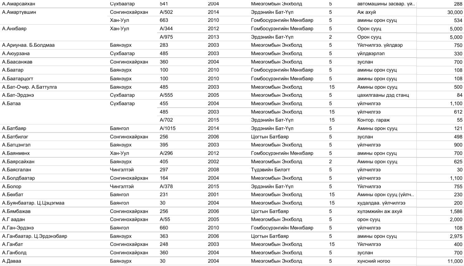 Засгийн газрын хэрэгжүүлж буй “5Ш” ажиллагааны нэг “Шилэн” ажиллагааны хүрээнд хэдэн онд, хэн, хэнд, хэр хэмжээний газар, ямар зориулалтаар олгосон тухай 36,985 мэдээллийг шилэн болголоо.