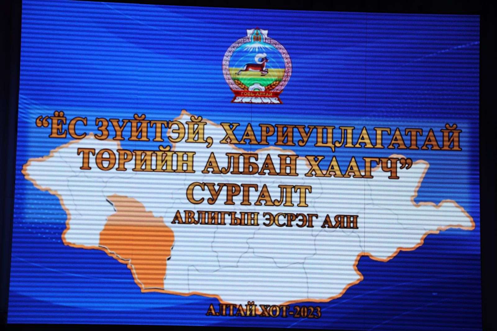 Авлигатай тэмцэх газраас хэрэгжүүлж буй “Шүгэл” ажиллагааны хүрээнд авлигын эсрэг үйл хэрэгт хүн бүрийн оролцоог нэмэгдүүлэх замаар хүнд суртал чирэгдлийг бууруулах, авлигыг мэдээлж, шүгэл үлээхийг уриалсан соён гэгээрүүлэх аян, аймгийн Засаг даргын Тамгын газраас өрнүүлж буй “Авлигыг би авахгүй, бас өгөхгүй аян”-ы нээлтийн үйл ажиллагааны хүрээнд төрийн албан хаагчийн ёс зүй, хариуцлагыг дээшлүүлэх зорилгоор “Ёс зүйтэй хариуцлагатай төрийн албан хаагч” сэдэвт сургалтыг 58 төрийн байгууллагын 200 албан хаагчдад 2023 оны тавдугаар сарын 25-ны өдрийн 09:00 цагаас 13:00 цагийн хооронд аймгийн Засаг даргын Тамгын газар, аймгийн Гэмт хэргээс урьдчилан сэргийлэх салбар зөвлөл зохион байгууллаа.