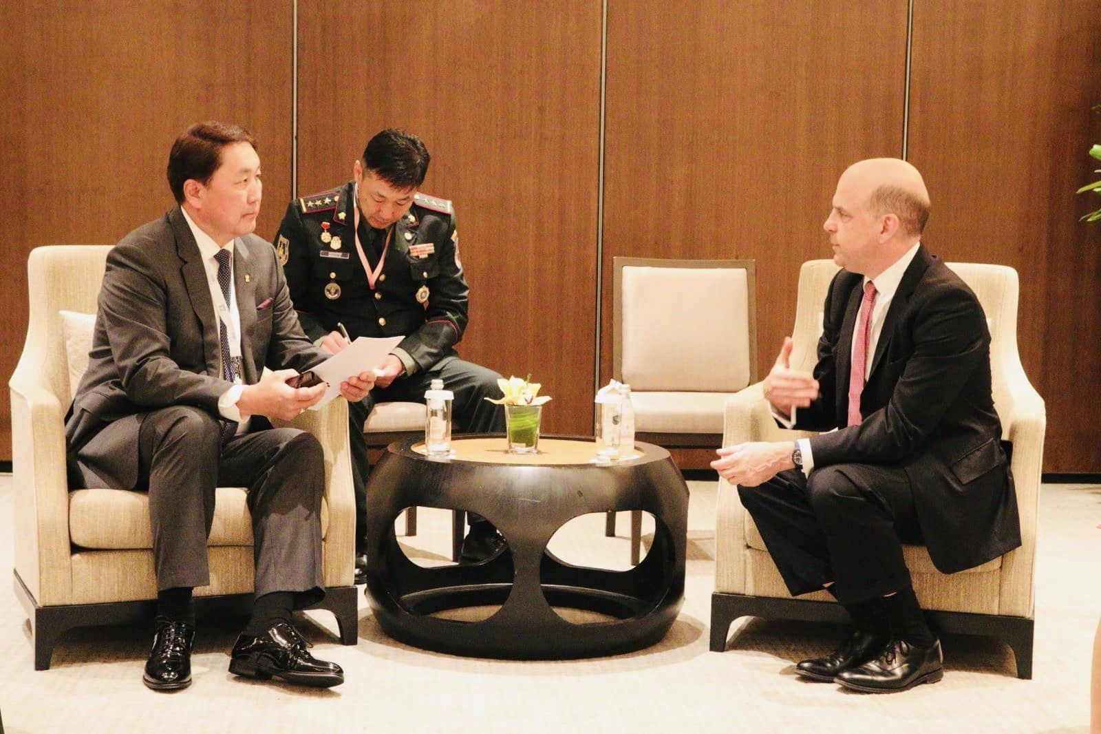 Түүнчлэн тэрбээр Америкийн Нэгдсэн Улсын Батлан хамгаалахын сайд Ллойд Остин, Канад Улсын Батлан хамгаалахын сайд хатагтай Анита Ананд, Бүгд Найрамдах Солонгос Улсын Батлан хамгаалахын сайд Лий Жонг-Суп, Холбооны Бүгд найрамдах Герман Улсын Батлан хамгаалахын сайд Борис Писториус, Филиппин Улсын Батлан хамгаалахын сайдын үүргийг түр орлон гүйцэтгэгч Карлито Галвез, Умард Атлантын гэрээний байгууллагын ерөнхий нарийн бичгийн даргын орлогч ноён Ангус Лэпслей, Зүүн Өмнөд Азийн бүс нутгийн хамтын ажиллагааны нийгэмлэгийн ерөнхий нарын бичгийн дарга доктор Као Ким Хоурн нартай хоёр талын уулзалт хийж, хоёр талын харилцаа, батлан хамгаалах салбарын хамтын ажиллагааны өнөөгийн түвшин, цаашдын хөгжлийн чиг хандлага, шинэ боломжуудын талаар дэлгэрэнгүй ярилцав.