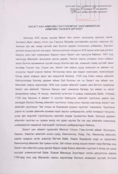 Шинжлэх ухааны академийн Түүх, угсаатны зүйн хүрээлэнгээс Говь-Алтай аймгийг урьдын Халхын Засагт хан аймаг, Хантайшир уулын аймгийн гал голомтыг залгамжлан авч яваа аймаг мөн хэмээн дүгнэжээ.