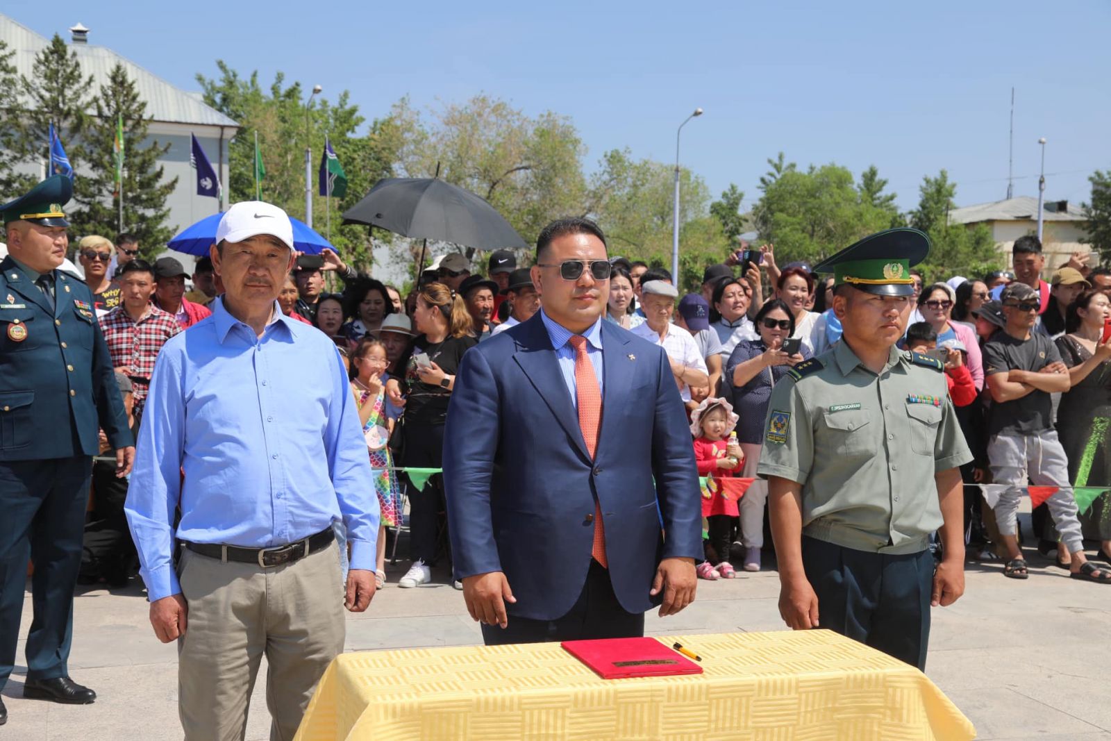 Аймгийн Засаг дарга Б.Ариун-Эрдэнэ, Цэргийн штабын дарга, дэд хурандаа Ч.Энхбаяр зарим сумдын Засаг дарга нарын хамт 2023 оны нэгдүгээр ээлжээр Хилийн цэргийн 0243-р ангид хугацаат цэргийн алба хааж буй дайчдын цэргийн тангараг өргөх ёслолын арга хэмжээнд оролцож эх орныхоо дархан хилээ хамгаалах нэр хүндтэй, хариуцлагатай албаа үлгэр жишээ хааж байгаа цэргүүдэд баярын бэлэг гардуулж баяр хүргэлээ.
