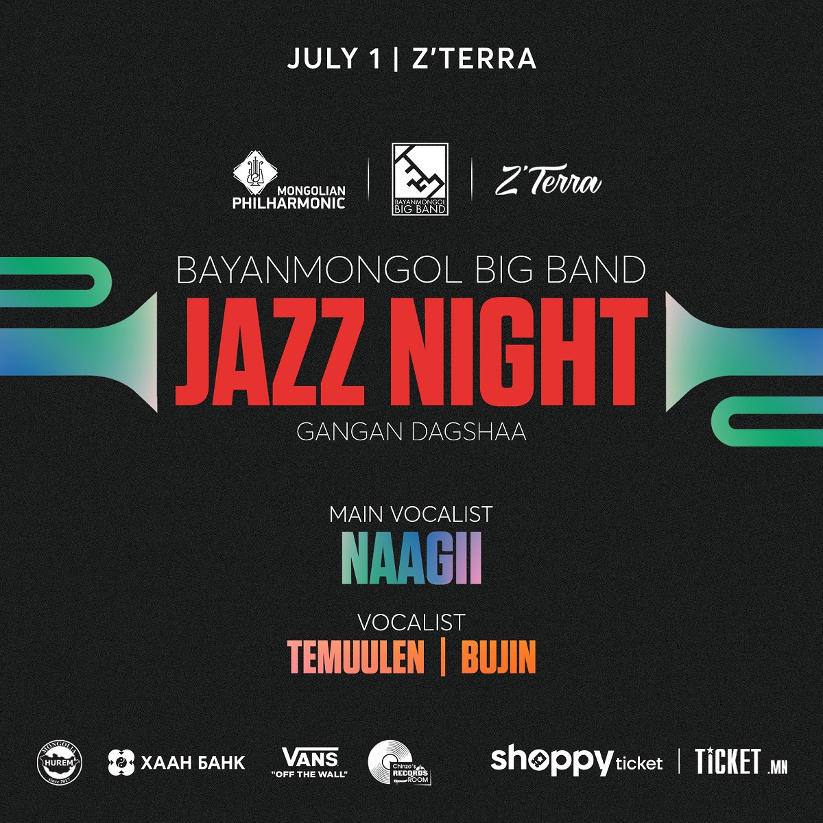 Монгол Улсын Төрийн Соёрхолт "Баян Монгол" чуулгын 3 дахь пянз "Black Album" Пянз-ны нээлт, жазз хөгжмөөр бие сэтгэлээ баясгах нэгэн үдшийг хотын хамгийн том Z'Terra-д толилуулах гэж байна.
