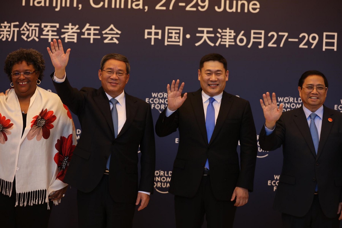 Бүгд Найрамдах Хятад Ард Улсад албан ёсны айлчлал хийж буй Монгол Улсын Ерөнхий сайд Л.Оюун-Эрдэнэ Тяньжин хотноо болж буй Дэлхийн эдийн засгийн чуулга уулзалтын нээлтэд оролцож, Давосын эдийн засгийн форумын үүсгэн байгуулагч бөгөөд Ерөнхийлөгч Клаус Швабтай уулзалт хийв.