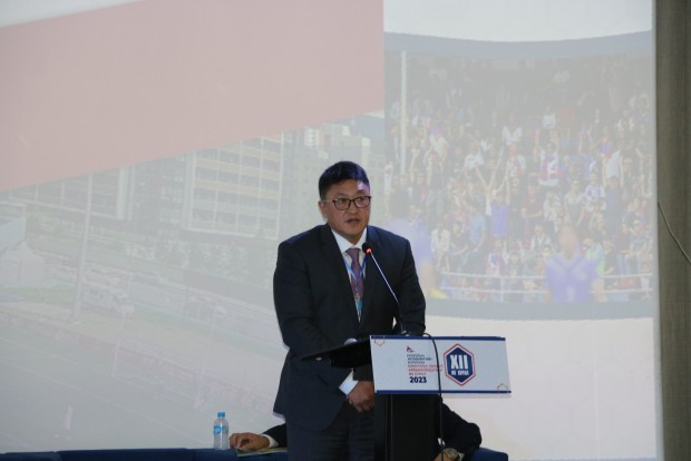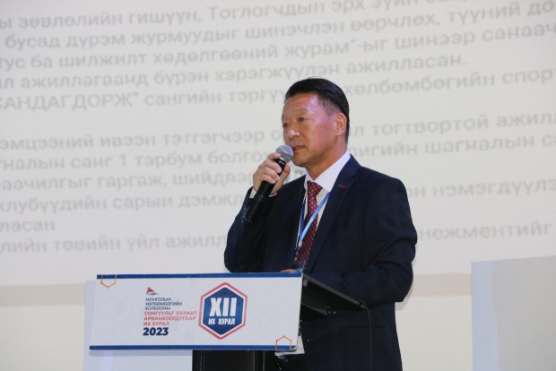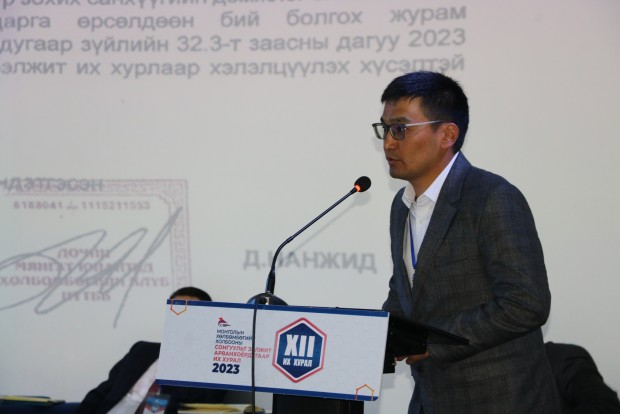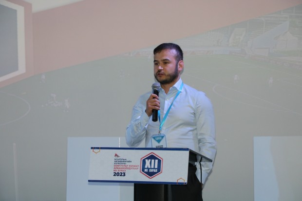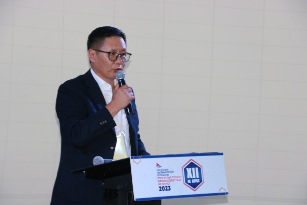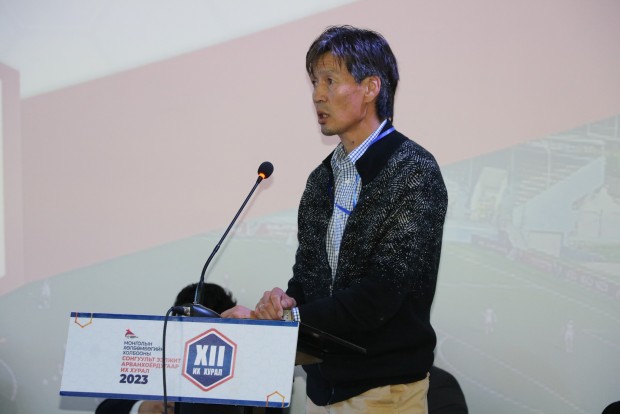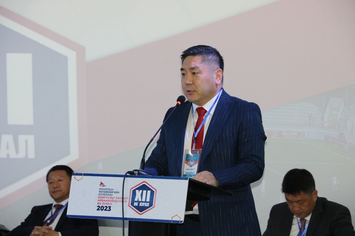 МХБХ-ны ээлжит сонгуульт XII дахь удаагийн их хурлыг нээж АХБХ-ны Дэд Ерөнхийлөгч МХБХ-ны Ерөнхийлөгч үг хэлж нээж хэлэлцэх асуудлуудыг батласны дараагаар өөрийн 2015 оноос хойш 8 жил ажилласан товч тайланг танилцуулж 2023 онд АХБХ-ны Дэд Ерөнхийлөгчөөр улиран сонгогдсонтой холбоотойгоор цаашид ОУХБХ, АХБХ-той харилцах харилцаанд Монголын Хөлбөмбөгийн түүчээ болон ажиллахаа илэрхийлэв. Энэ үеэр ОУХБХ-ны Ерөнхийлөгч Жианни Инфантино цахимаар МХБХ-ны ээлжит их хуралд хүрэлцэн ирсэн төлөөлөгчдөд мэндчилгээ дэвшүүллээ.