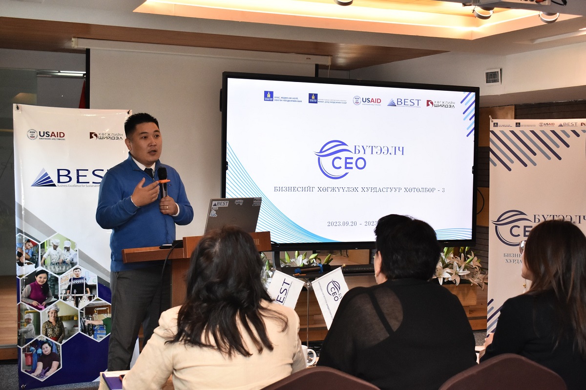 -БЕСТ хөтөлбөр бол зээл хүсэхээр хөөцөлдөж байгаа Аж ахуйн нэгжүүдэд анхнаас нь хэрхэн төслөө бичих вэ, яавал шалгарах магадлалтай вэ гэдэгт зөвлөх үйлчилгээ үзүүлж байгаа. Ингээд шалгарсных нь дараа ЖДҮГ-аас хамтарсан сургалтуудыг зохион байгуулдаг. Томоохон үйлдвэрүүдэд очиж танилцах аялал хийлгэнэ. Өөрөөр хэлбэл, БЕСТ хөтөлбөртэй бүх үйл ажиллагаанд нь хамтардаг. Бетээлч СЕО хөтөлбөрөө төгссөнийх нь дараа бид аж ахуйн нэгжүүдийнхээ үйл ажиллагаанд хяналт тавих тал дээр мөн хамтарч байгаа. Энэ бол ЖДҮГ-аас олгосон санхүүжилтээ үр дүнтэй байлгах талаас нь хоёр байгууллага нягт, салшгүйгээр ажиллаж байна гэсэн үг.