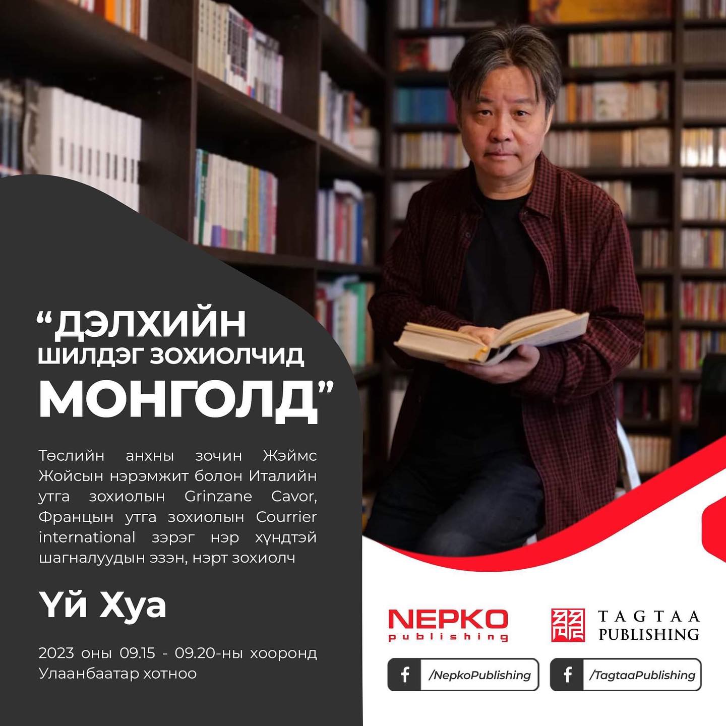 Төслийн анхны зочноор “Амьдрахуй”, “Вэн хот” зэрэг зохиолуудаараа Монголын уншигчдад хэдий нь танил болсон Хятадын нэрт зохиолч Үй Хуаг урьсан аж. Урилгын дагуу зохиолч Үй Хуа 2023 оны есдүгээр сарын 16-20-ны өдрүүдэд Улаанбаатар хотноо зочлох ба "Үндэсний номын баяр"-ын өдрүүдээр уншигчидтай уулзаж, залуу зохиолчдод санал, зөвлөгөө өгөхөөр болжээ.