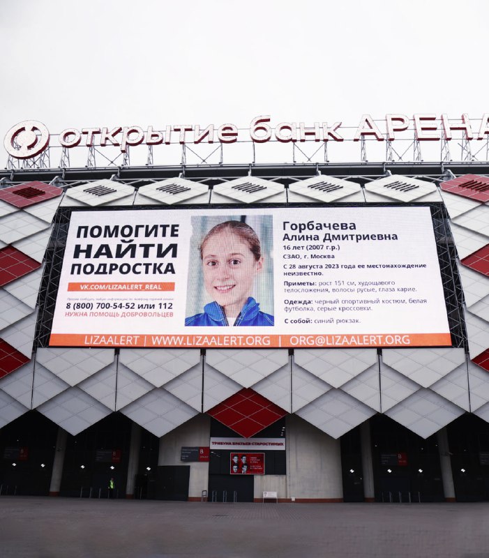 Москвагийн Спартак баг цэнгэлдэх хүрээлэндээ Алинаг эрэн хайж байгаа самбар байрлуулжээ.