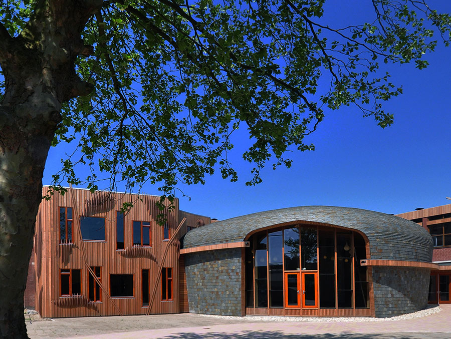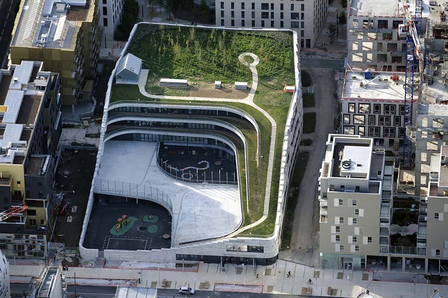 Энэ сургууль нь яруу найраг, боловсрол, байгалийн шүтэн барилдлагын мөн чанарыг тунгаах боломж юм. Барилга тэр чигтээ өөрийн гэсэн экологийн систем, биологийн олон янз байдлыг хангасан байгаль орчин болжээ. Энэхүү байгууламж нь гаднах төрхөө байнга өөрчилдгөөрөө онцгой. Дээвэр нь жинхэнэ цэцэрлэгт хүрээлэн. Бетон блокоор барьсан “амьд” хана нь сонирхол татна. Ханын өвөрмөц шийдэл нь борооны усыг хуваарилахад тусална. Энд шувуу үүрлэж, ургамал ургаж, янз бүрийн төрлийн жижиг амьтан амьдрах орчныг бүрдүүлдэг. Энэ төсөл нь цоо шинэ хандлагыг эхлэл юм. Хотын дүүргүүдийн зүрхэнд биологийн олон янз байдлыг буцаан авчрах эрмэлзэл юм.