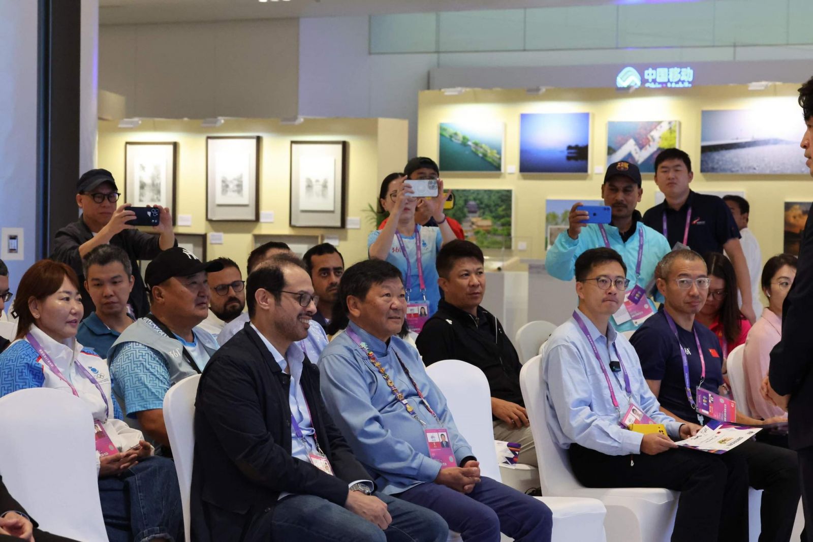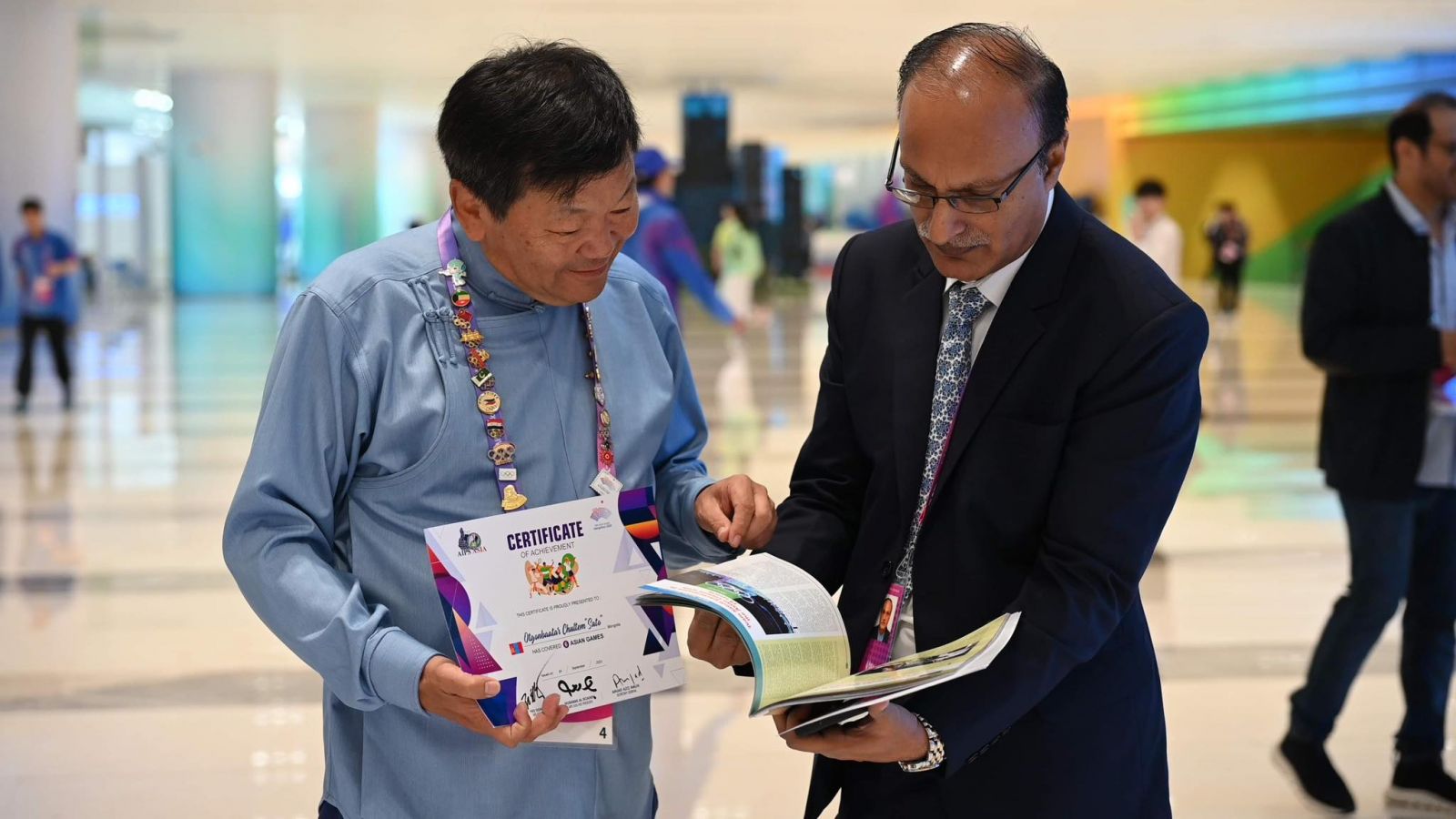 -Катарын сэтгүүлч найз нар маань Азийн наадмыг 5 болон түүнээс олон удаа газар дээр нь сурвалжлан ажилласан сэтгүүлчдэд хүндэтгэл үзүүлэх саналыг анх гаргасан. Үнэхээр сайхан санаачилга байсан. Азийн спортын сэтгүүлчдийн холбооны тэргүүн, БНСУ-ын иргэн Хи Дон Жун ч энэ саналыг дэмжиж, энэ ёслолоо бид Ханжоуд болж буй Азийн наадмын үеэр хийх нь зөв гэдэг дээр санал нэгдсэн. Гишүүн холбоодод маань 5 болон түүнээс олон удаа Азийн наадамд ажилласан 90 гаруй хүн байна. Тэднээс өнөөдөр зарим нь энэхүү батламжаа гардан авлаа. Энэ ёслолыг спортын сэтгүүлчдэдээ хүндэтгэл үзүүлж, тэдэндээ үргэлж санаа тавьж байгаа гэдгээ илэрхийлж байгаа нэг хэлбэр гэж ойлгож болно. Цаашид олон Азийн наадамд үргэлжлэн зохион байгуулах энэхүү хүндэтгэл үзүүлэх арга хэмжээ Ханжоу хотноо албан ёсоор эхэлж байна.