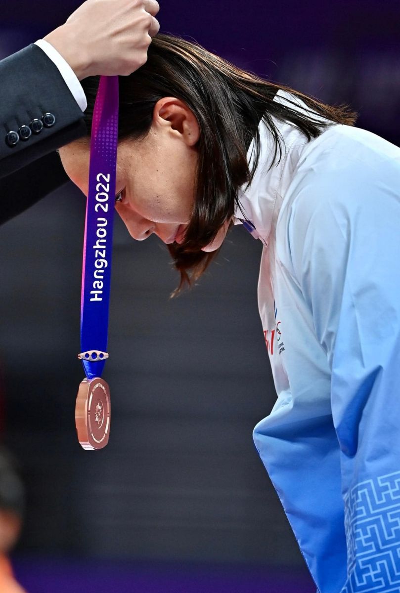 Манай тамирчин медалийн өнгөө хувиргах барилдаанаа БНХАУ-ын Юү Дантай хийсэн ч ялагдсанаар ХҮРЭЛ медаль хүртлээ.