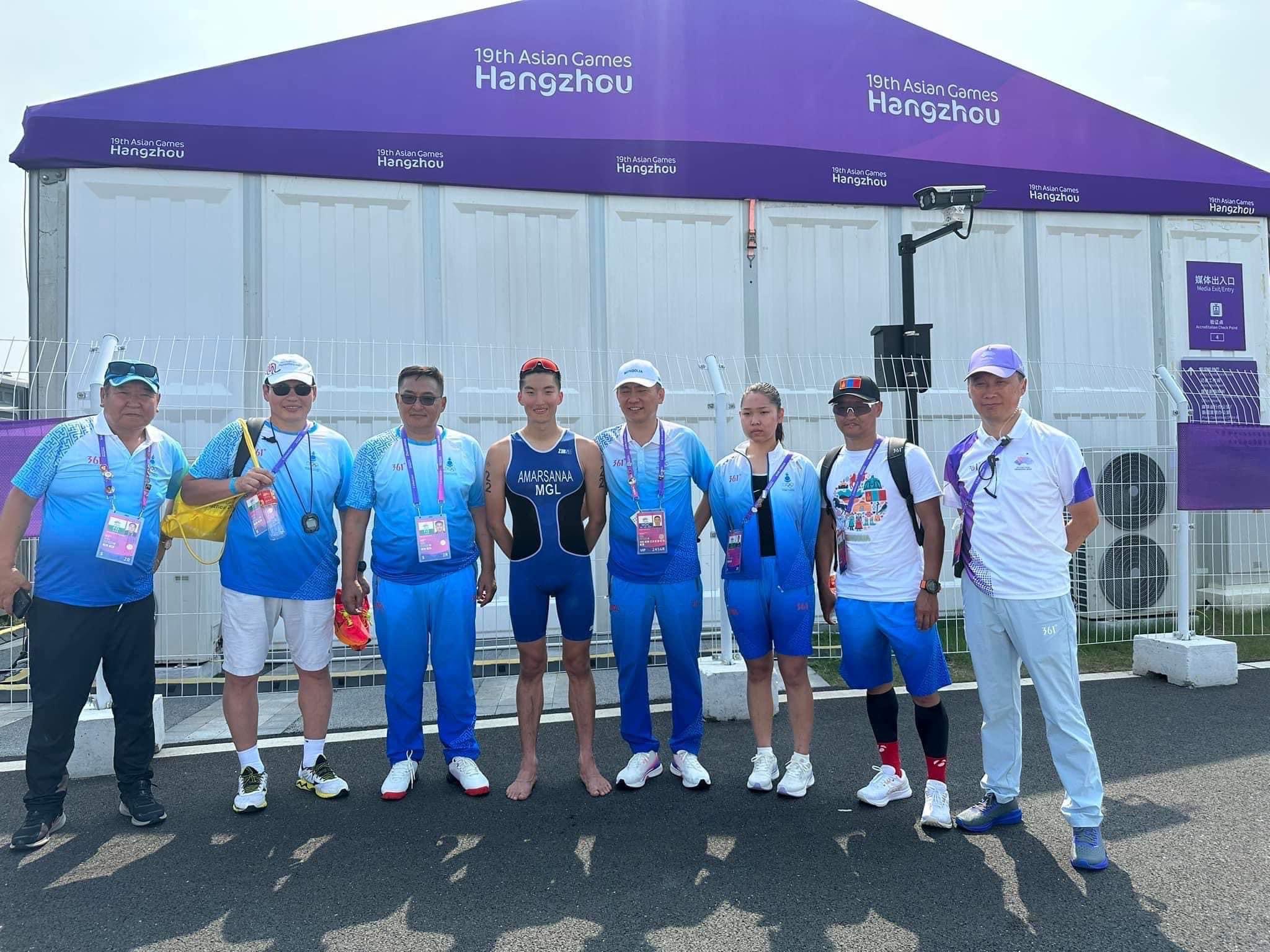 Ханжоугийн Азийн наадамд триатлоны баг тамирчид тавуулаа хүрэлцэн ирж Азийн 21 орны шилдгүүдтэй хурд хүчээ сорьж байгаа юм. Багийн бүрэлдэхүүнд Азийн наадамд тавдахь удаагаа оролцож буй ахмад мастер Ч.Гансүхээс (2002 онд усанд сэлэлтээр анх өрсөлдсөн) гадна спортын мастер Г.Амарсанаа, Ц.Цэрэнбат, залуу тамирчин О.Эрдэнэзул, Г.Ганцэцэг нар Монгол, Япон дасгалжуулагчтайгаар Ханжоуд иржээ.