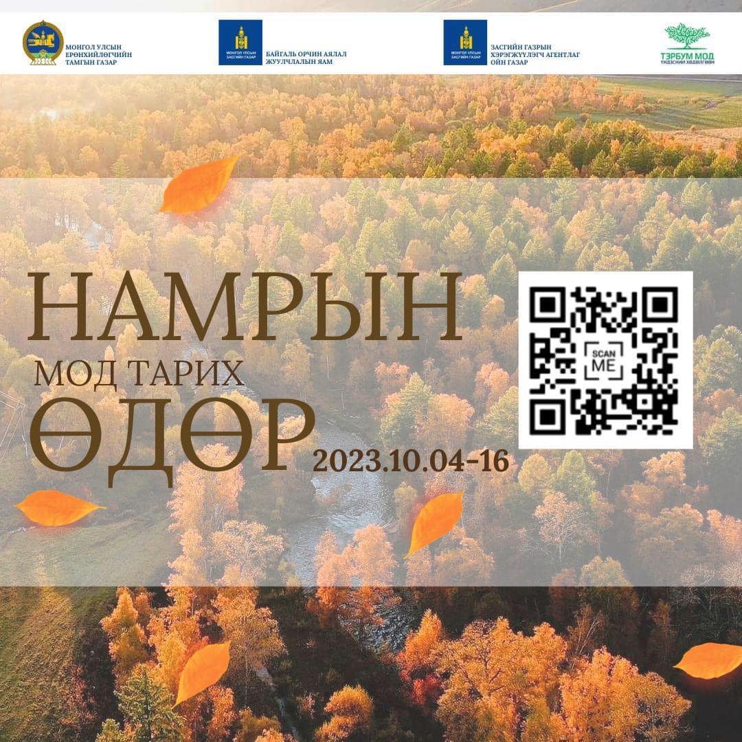 Намрын бүх нийтээр мод тарих үндэсний өдрийг 2023 оны аравдугаар сарын 04-16-ны хооронд зохион байгуулна.