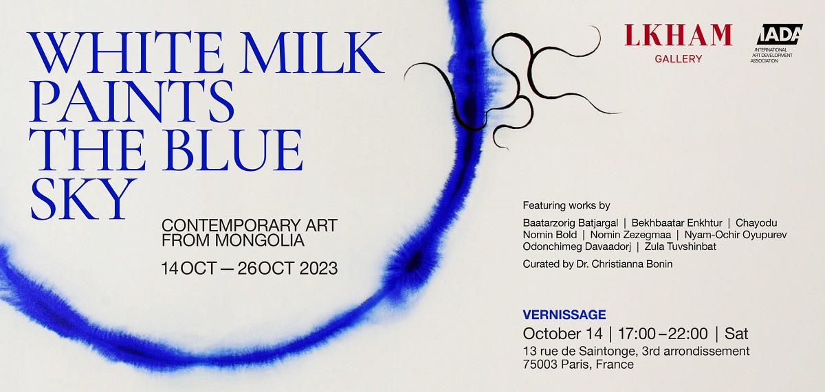 Лхам галерейн "Цагаан сүүгээр хөх тэнгэрийг будна" үзэсгэлэнг Олон улсын урлагийн хөгжлийн холбоотой (IADA) хамтран зохион байгуулж байгаа бөгөөд IADA нь Парист төвтэй, Казахстан болон Төв Азийн орчин үеийн урлагийг сурталчлах зорилготой ашгийн төлөө бус, төрийн бус байгууллага юм. Доктор Кристианна Бонины кураторлосон "ЦАГААН СҮҮГЭЭР ХӨХ ТЭНГЭРИЙГ БУДНА" үзэсгэлэнд монголын орчин үеийн урлагийн 8 уран бүтээлч оролцож байна.