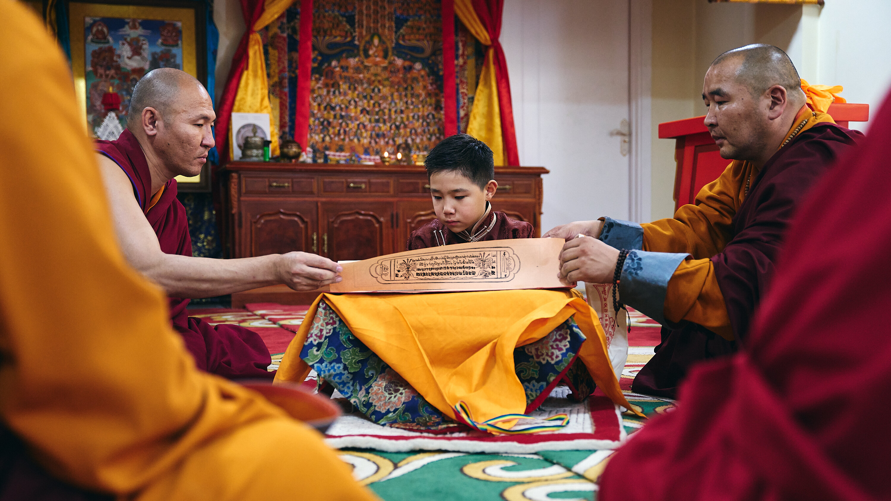 Хүү хоёр өөр ертөнцдөө хялбархан дасан зохицож байгаа гэлтэй. Түүнийг Дарамсалад Далай лам танилцуулах хүртэл олон цагаар номхон сууж, түүний сургаалыг сонсов. Өнгөрсөн өдрүүдэд тэрбээр сургуульдаа явж, ангийнхаа хүүхдүүдтэй тоглож, биеийн тамирын хичээлдээ буухиа гүйлтэд оролцохдоо нүүр дүүрэн инээмсэглэнэ. Дараа нь дээл өмсөн, Гандантэгчинлэн хийдэд шашны номоо үзэв. Лам нарын дэргэд хүүгийн тэр их эрч хүч дөлгөөн, тохитой хүний аурагаар солигдон, судар уншин, шашны зан үйл заалгана. “Хүүхэд учраас юу болж буйг ойлгохгүй байгаа ч дургүйцээгүй. Тэр маш амгалан. Түүний хоёр дахь төрх нь юм шиг” гэж хүүгийн ээж ярив.
