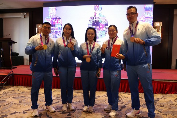 Монгол Улсын сайд, ОНБТСҮХ-ы дарга Б. Бат-Эрдэнэ, БТСУХ-ны дарга О. Баттулга тэргүүтэй салбарын удирдлагууд БНХАУ-д болсон “Ханжоу-2022” Азийн XIX наадамд медаль хүртсэн Монгол Улсын шигшээ баг тамирчдад хүндэтгэл үзүүллээ.