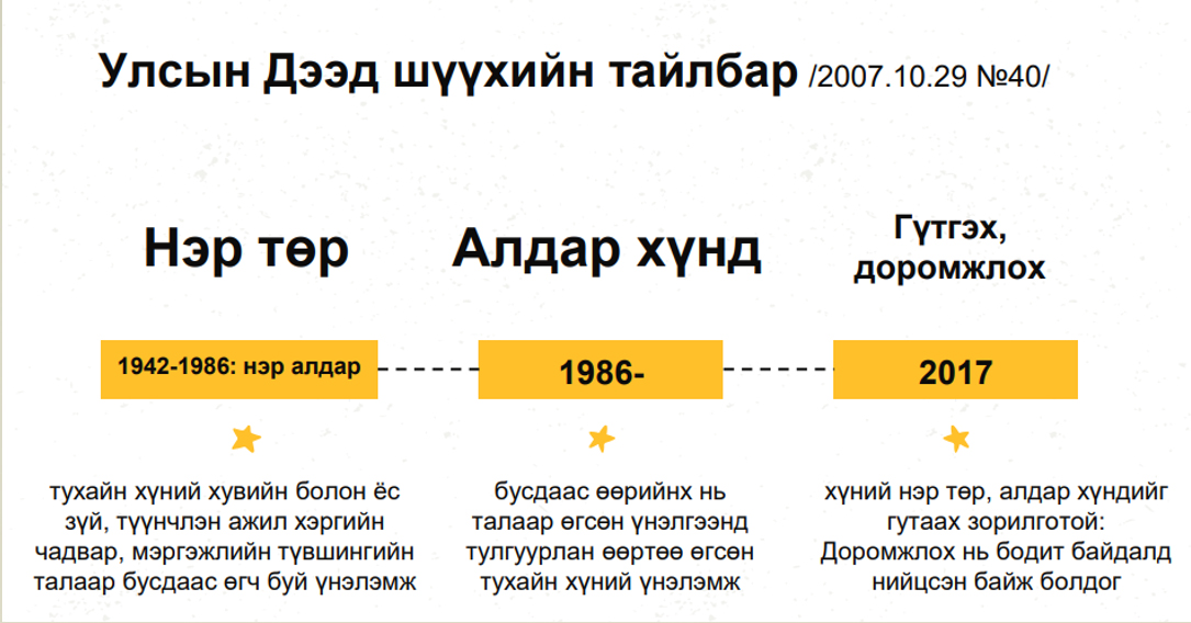 Тэгвэл Хууль зүй, дотоод хэргийн сайд Б.Энхбаяр "Эрүүгийн хуульд өнгөрсөн жил доромжлох үйлдлийг гэмт хэрэгт тооцъё гэдэг асуудал хуулийн төсөл өргөн баригдсан. Хууль зүй, дотоод хэргийн сайдын хувьд би доромжлох үйлдлийг гэмт хэрэгт тооцохын эсрэг байдаг. Гишүүн байхдаа ч энэ байр сууриа илэрхийлж байсан. Иймд доромжлох үйлдлийг гэмт хэрэгт тооцох хуулийн заалтыг би Хууль зүй, дотоод хэргийн сайдын хувьд татаж авна гэдгээ илэрхийлж байна” гэсэн байр суурийг илэрхийлээд байна. Салбарын сайд хэлсэн амандаа хүрэх үү, үгүй юу гэдэг олон нийтийн анхаарлын төвд байгаа юм.
