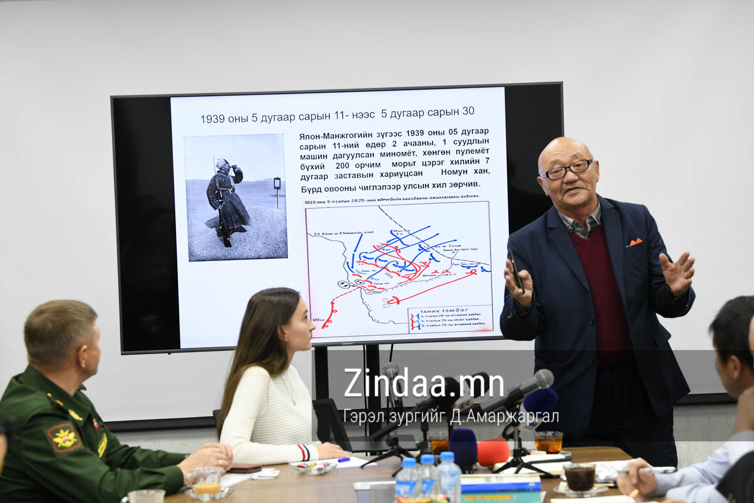 Хэвлэлийн бага хуралд Дорнод аймгийн Халхгол сумын “Ялалт” музейг үүсгэн байгуулагч, Монгол Улсын Соёлын гавьяат зүтгэлтэн Л.Мягмарсүрэн, тус музейн захирал А.Чинбаян болон ОХУ-ын Элчин сайдын яамны Цэргийн атташе П.В.Петрунин нар оролцож, түүхэн байлдаан болон түүний ач холбогдлын тухай ярилаа.