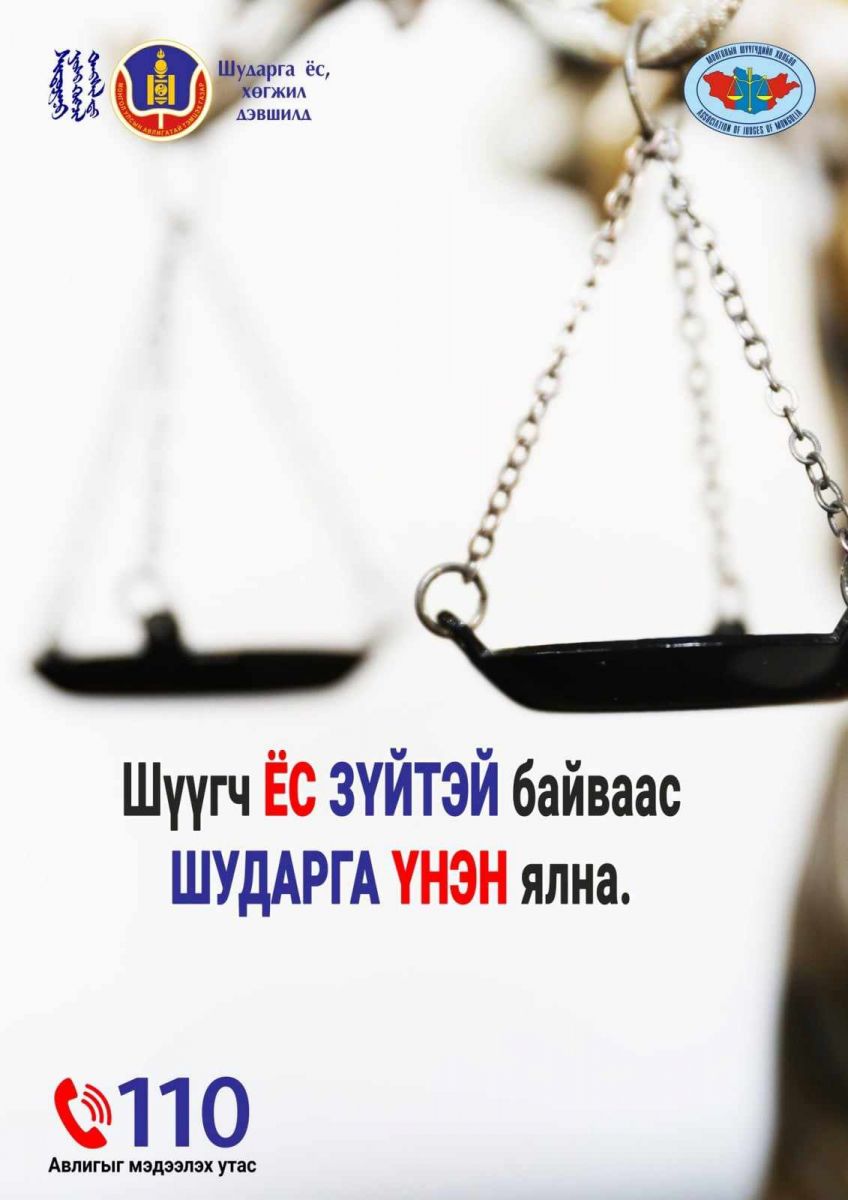 -Монголын шүүгчдийн холбоо 2022 онд Авлигатай тамцэх үндэсний хөтөлбөрийн хүрээнд АТГ-ын урьдчилан сэргийлэх соён гэгээрүүлэх хэлтэстэй хамтран төсөл хэрэгжүүлсэн. Тэр төслийн хүрээнд нийт шүүгчдээс саналыг нь авч долоон төрлийн постерийг иргэд болон шүүгчид, Шүүхийн тамгын газрын ажилтнууд, шүүгчдийн туслахуудад зориулж гаргасан. Постероор ямар мессэжийг иргэд олон нийт хийгээд шүүгчдэд өгөх гэсэн бэ гэвэл хэн нэгэн шүүгчид өгнө гэж төлбөр авсан бол шууд мэдээл гэсэн утгатай. Хэрэг маргааны талаар аль нэг шүүгчид хэлсэн гэх юмуу, ийм зүйл байвал шууд мэдээл. Энэ нь авлигыг таслан зогсооно гэсэн утгатай. Мөн иргэд рүү чиглэсэн гурван постер гаргасан. Энэ нь шүүгчийнхээ тангараг, Шүүхийн тамгын газрын ажилтны ажил үүргийн хуваарьт юуг онцолсон байдгийг сануулсан утгатай. Шүүгчдийн дээр хууль бий, хуулийн дагуу аливаа шийдвэр гардаг гэсэн товч бөгөөд тодорхой мэдээллийг онцолсноос иргэд нэлээн олон зүйл мэдэж авах боломжтой. Товч атал тодорхой бөгөөд чухал мэдээллийг олгох долоон төрлийн постерийг АТГ-ын урьдчилан сэргийлэх соён гэгээрүүлэх хэлтэстэй хамтран гаргасан. Өдгөө Монголд үйл ажиллагаа явуулж байгаа 117 шүүхийн Тамгын газарт эдгээр мэдээллээ түгээж, байршуулсан. Өнөөдөр иргэд аль ч шүүх рүү яваад ороход шүүх танхим, хүлээлгийн өрөө, бүх газарт хамгийн сайн харагдах цэгт постеруудыг байршуулсан байгаа. Тамгын газрууд ч энэ ажлыг маань сайнаар хүлээж авсан.