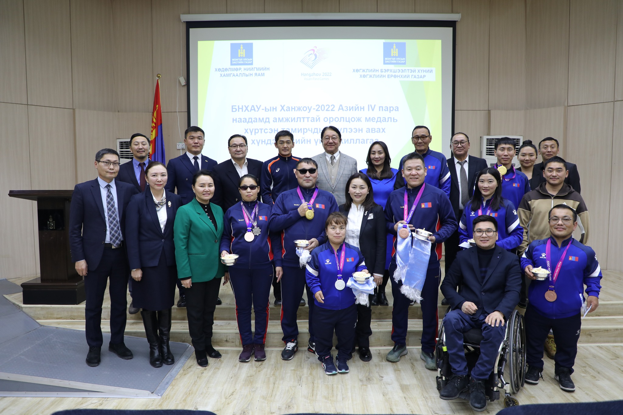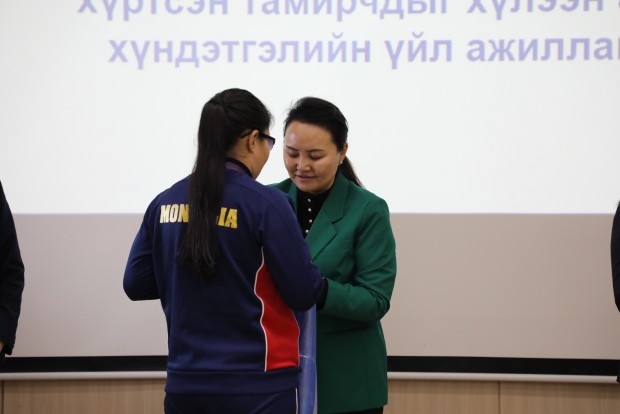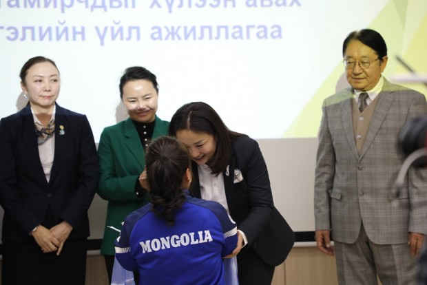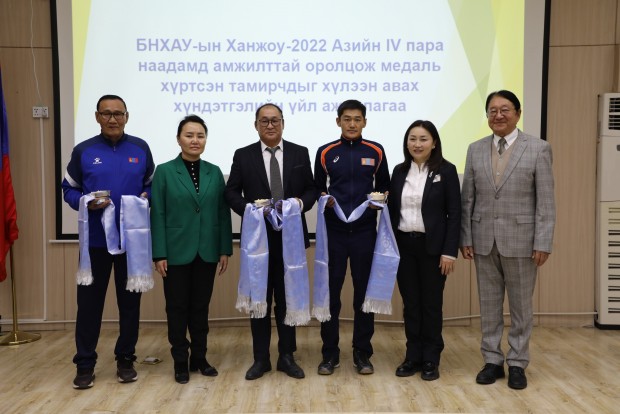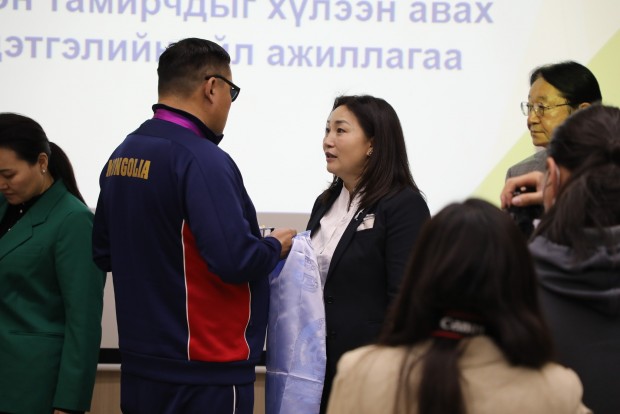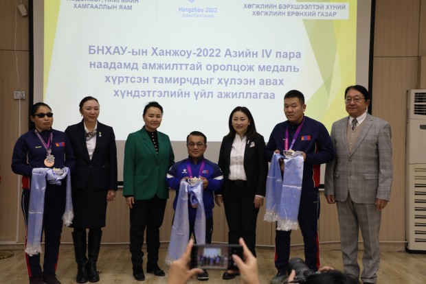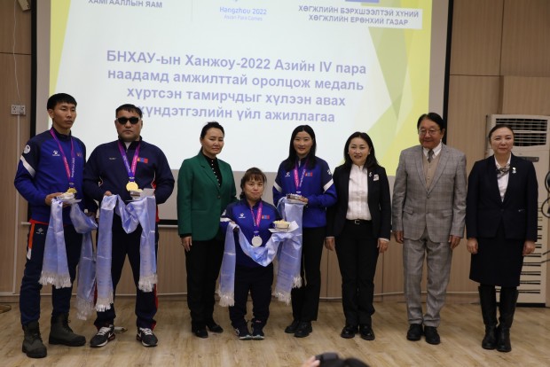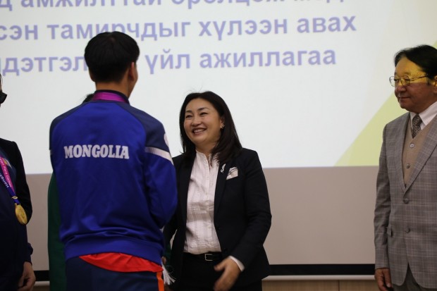 Азийн зуны спортын IV наадамд түүхэн амжилт гаргасан тамирчид болон баг дасгалжуулагчдыг Хөдөлмөр, нийгмийн хамгааллын сайд Х.Булгантуяа болон бусад холбогдох удирдлагууд хүлээн авч, баяр хүргэн хүндэтгэл үзүүллээ.