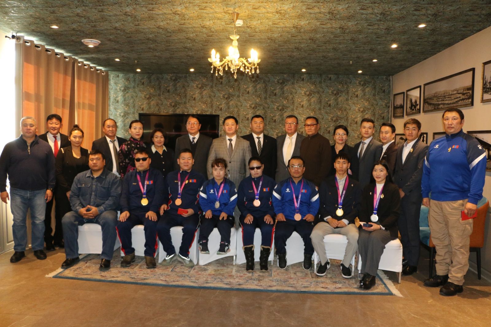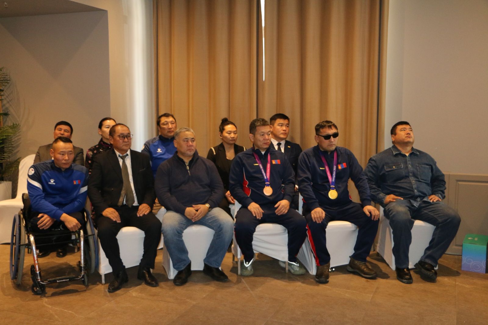 Арга хэмжээнд Монгол Улсын сайд, Олимп, нийтийн биеийн тамир, спортын Үндэсний хорооны дарга Б.Бат-Эрдэнэ, Биеийн тамир, спортын улсын хорооны даргын үүргийг түр орлон гүйцэтгэгч О.Баттулга, ОНБТСҮХ-ны Ажлын албаны дарга Э.Тэмүүжин, БТСУХ-ны Биеийн тамирын бодлогын хэрэгжилтийн хэлтсийн дарга Б.Нямсүрэн, Үндэсний шигшээ багийн бодлогын хэрэгжилтийн хэлтсийн дарга Э.Билэгт, Гадаад харилцаа, мэдээллийн технологийн хэлтсийн дарга Н.Оюунбат, Монголын үндэсний паралимпын хорооны ерөнхийлөгч Д.Нямхүү нарын хүндтэй эрхмүүд оролцов.