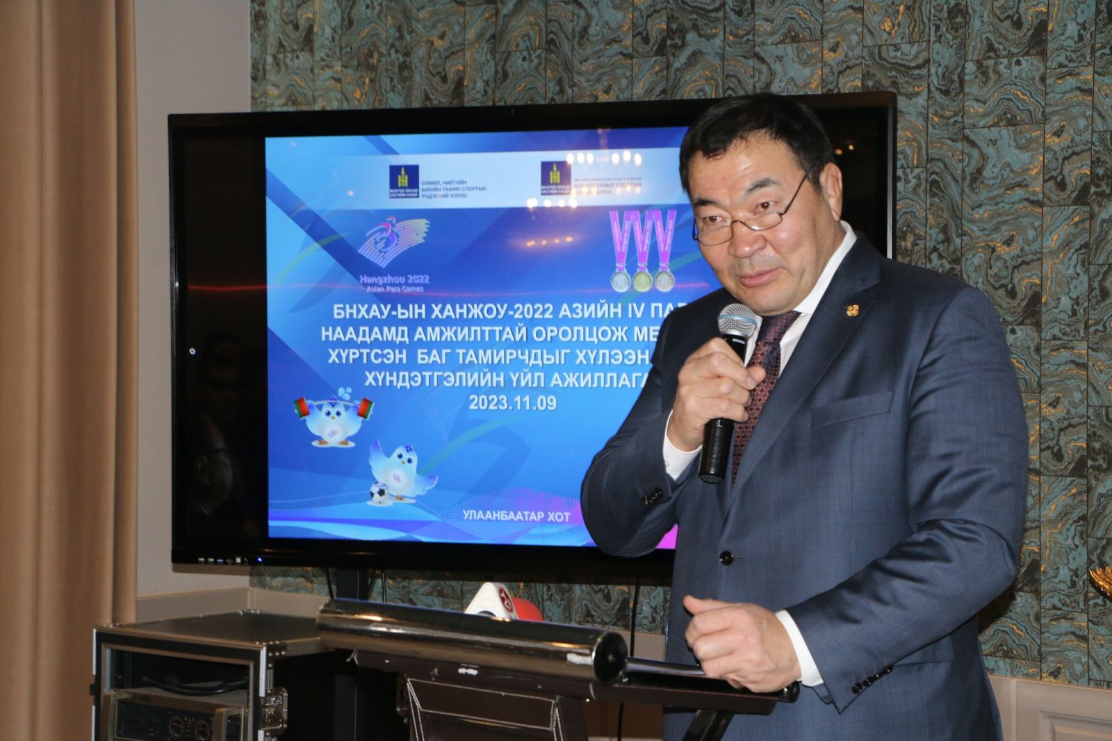 БНХАУ-ын Ханжоу хотод Азийн зуны спортын пара наадам аравдугаар сарын 22-28-ны өдрүүдэд болсон бөгөөд Монголын баг тамирчид спортын 14 төрөлд 68 тамирчнаа илгээхэд найман тамирчин (2 алт, гурван мөнгө, гурван хүрэл) медаль хүртсэн юм. Монгол Улсын сайд, Олимп, нийтийн биеийн тамир, спортын Үндэсний хорооны дарга Б.Бат-Эрдэнэ, Биеийн тамир, спортын улсын хорооны дарга О.Баттулга нар өнөөдөр тус наадмаас медаль хүртсэн баг тамирчдад хүндэтгэл үзүүлж, зарим тамирчин, дасгалжуулагчийг шагнаж урамшуулав.