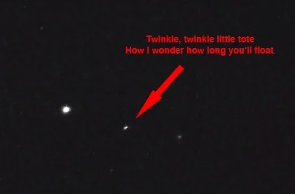 Сансрын нисэгч Жасмин Могбели, Лорал О'Хара нар олон улсын сансрын станцын гэмтлийг засах гэж задгай сансарт ажиллах үеэр тус цүнхийг алдсан байна. Одон орон судлаачид шинэ “хиймэл дагуулыг” дэлхийн олон газраас олж харсан байна. Цагаан өнгийн өнгийн цүнх Тэнгэрийн ван гарагаас тодгүй ч энгийн дурангаар харах боломжтой гэнэ. Тус объект дэлхийн тойрог замд хэдэн сар байх ба агаар мандалд орох үеэр шатаж үгүй болох гэнэ.