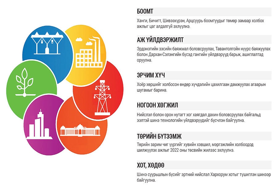 Одоогийн байдлаар Өмнөговь аймгийн Ханбогд сумыг жишиг хот болгон тохижуулахаар болж, Оюутолгой компаниас эхний ээлжийн хөрөнгө оруулалтад зориулан, 50 сая ам.доллар өгөхөөр болов. Дорноговь аймгийн Алтанширээ сумын нутагт баригдаж байгаа Газрын тос нэрэх үйлдвэр ашиглалтад орох хугацааг 2025 он гэж байгаа ч ихээхэн бүтэл муутай байгааг мэргэжилтнүүд дуулгасан. Өргөн хэрэглээний бараа бүтээгдэхүүний үнэ өндөр авч, инфляцыг нэгэнт алдсан. Ам.долларын ханш ч өндөр авлаа. Гэтэл алба хаагчдын цалин цаваг нэмэгдсэн зүйл алга. Төр том том бүтээн байгуулалт ярьж, ард түмнээр илтэд тоглож байгааг дуулгах болов. Энэ бүх өнгө будгаа орхихоос өөр аргагүй.