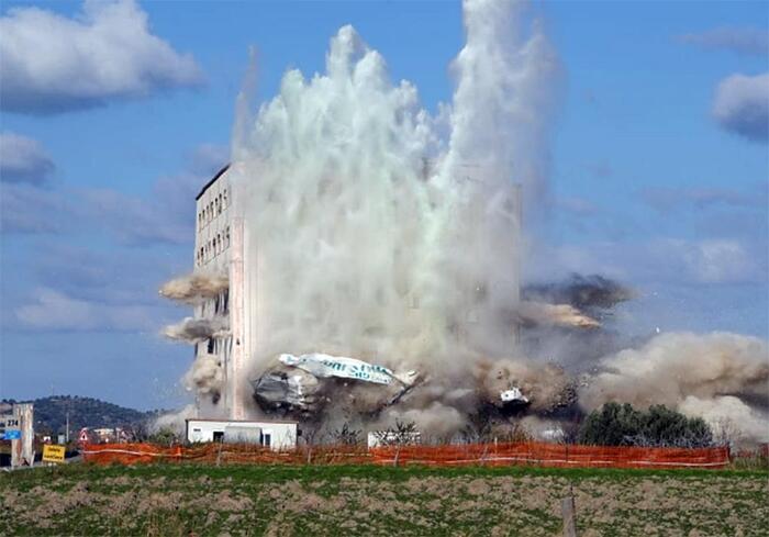 “La Repubblica” хэвлэлд мэдээлснээр, өмнө нь тавилгын үйлдвэр байрлаж байсан энэхүү барилга нь Иноны тэнгисийн эрэг дээрх Торре Мелисса хотын эрэг орчмын дүр төрхийг “гутааж” байжээ. 2012 оноос хойш тус барилга нь улсын өмчид шилжин, ашиглагдаагүй байна. Барилгыг дэлбэлэхийн тулд 400 кг тэсрэх бодис ашигласан байна.