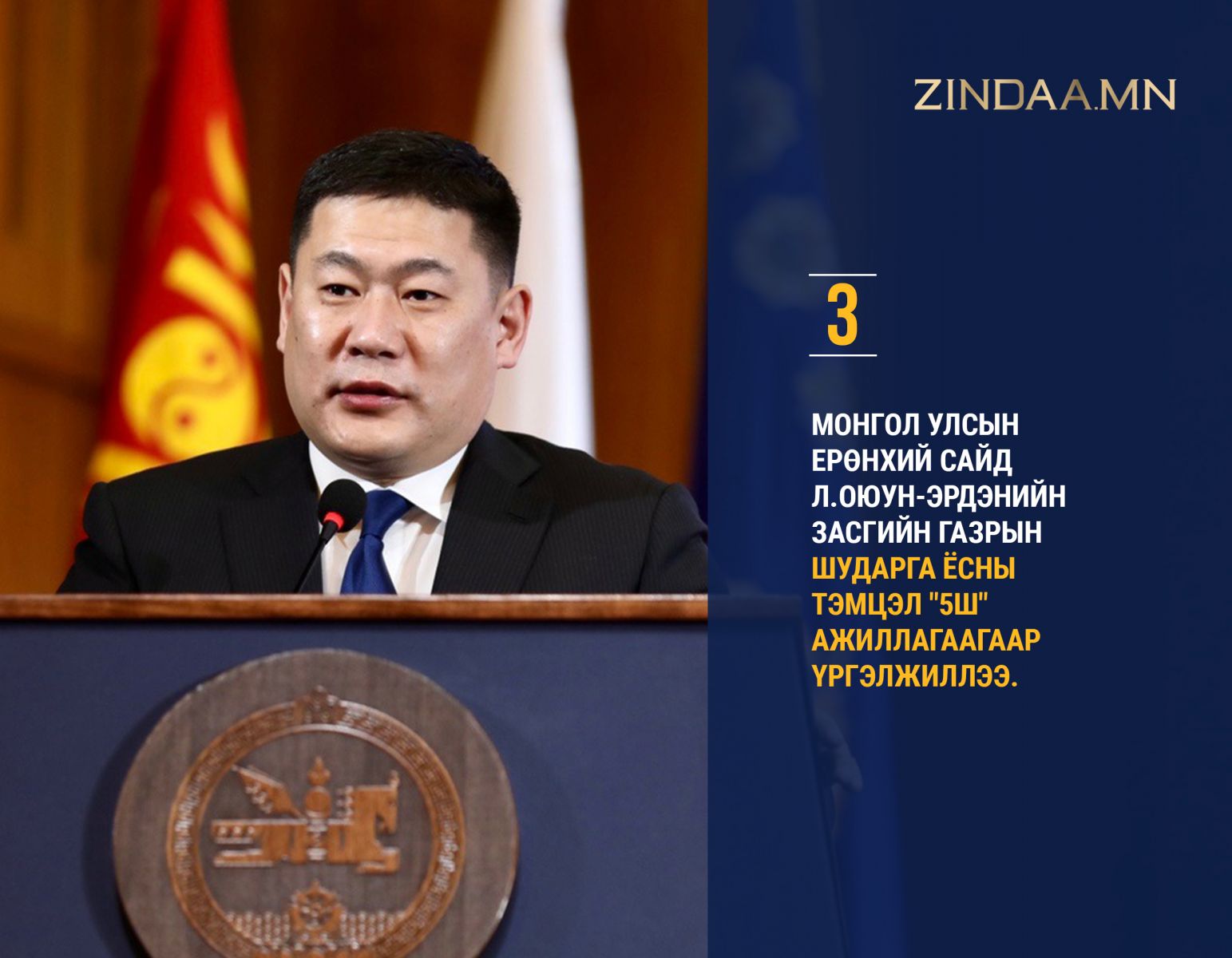 Монгол Улсын Ерөнхий сайд Л.Оюун-Эрдэнийн Засгийн газрын шударга ёсны тэмцэл "5Ш" ажиллагаагаар үргэлжиллээ. Товчхондоо, "Шүгэл", "Шүүр", "Шувуу", "Шилжүүлэн авах", "Шилэн" гэх таван ажиллагааг төрийн бүх шатанд хэрэгжүүлж эхэлсэн нь үр дүнгээ өгч эхлээд байгаа юм.