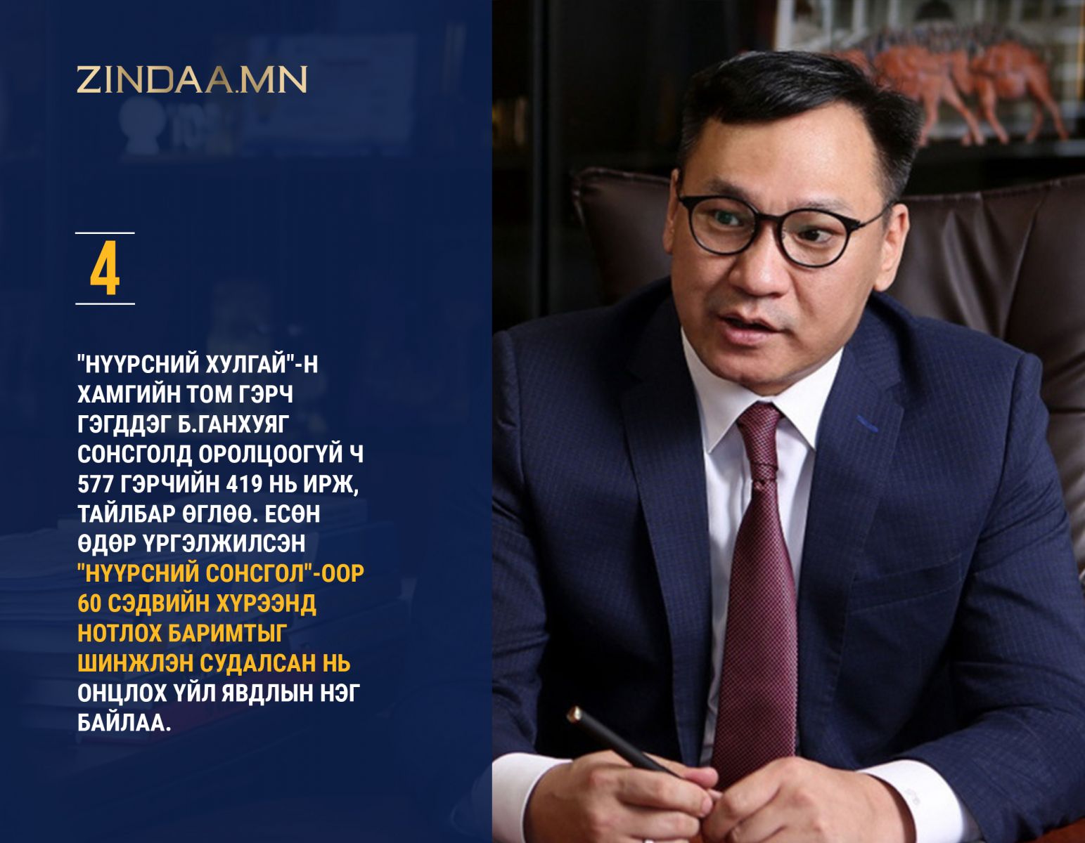 Хоёр он дамжсан "НҮҮРСНИЙ ХУЛГАЙ" гэх тодотголтой хэрэг эцэслэгдээгүй, шүүхийн болон мөрдөн байцаалтын шатанд явна. Улс төрд нөлөө бүхий олон хүн холбогдсон эл хэрэг тэр хэрээр олон нийтийн анхаарлыг татсан сэдэв хэвээр байна. Хамгийн сүүлд УИХ-ын Хяналт шалгалтын түр хорооноос "НҮҮРСНИЙ СОНСГОЛ"-ыг хоёр үе шаттай зохион байгууллаа. Сонсголыг ХЗДХ-ийн сайд Б.Энхбаяр ахалсан.