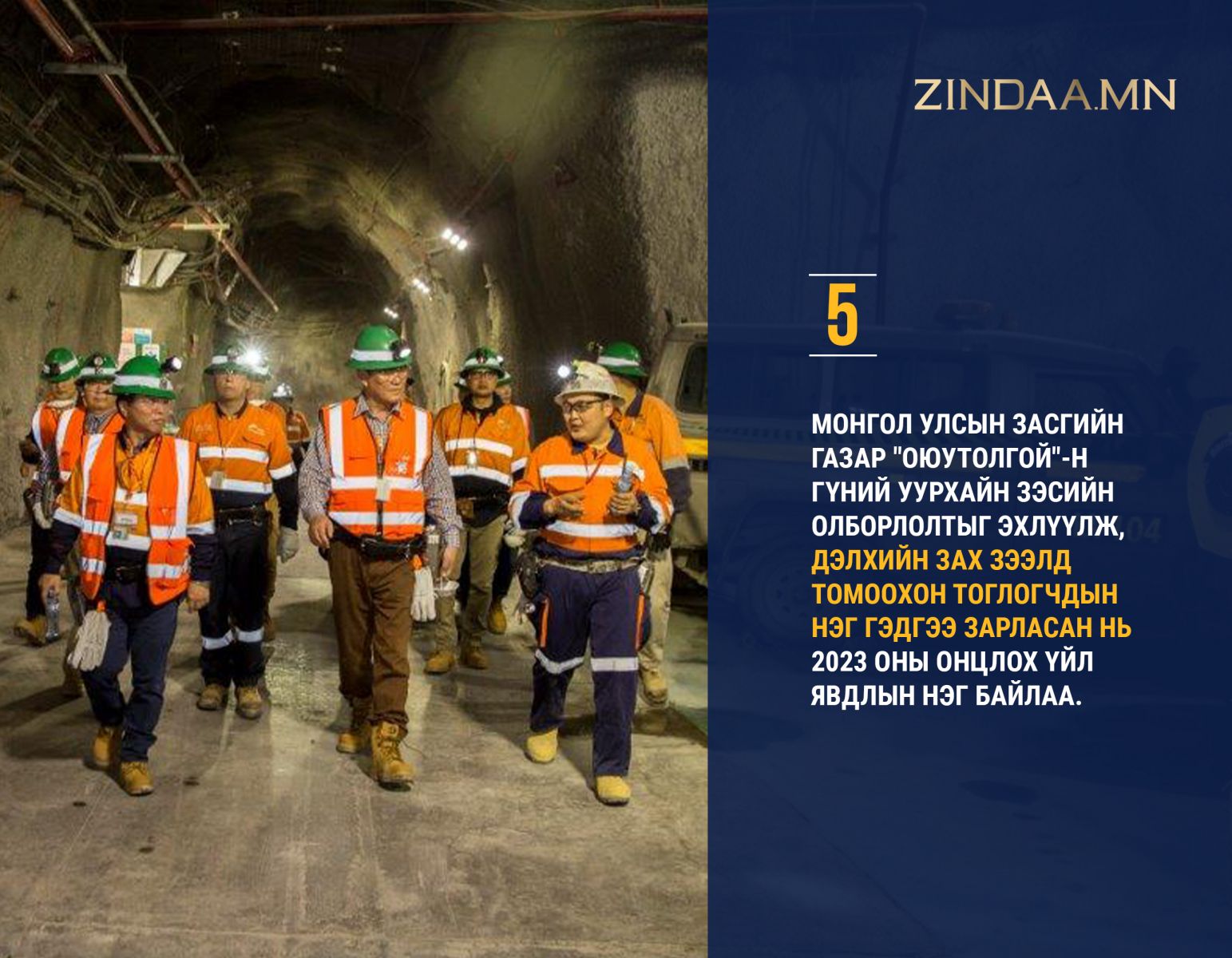 Монгол Улсын Засгийн газар "Оюутолгой"-н гүний уурхайн зэсийн олборлолтыг эхлүүлсэн явдал нь 2023 оны онцлох үйл явдлын нэг байлаа. Гүний уурхайн нээлтийг гадаад, дотоодын 70 гаруй сэтгүүлч, зураглаач сурвалжилсан. Энэхүү уурхай нь ил болон далд уурхайгаас 2028-2036 онд жилд дунджаар 500 мянган тонн зэс үйлдвэрлэх бөгөөд түүнээс цааш жилд дунджаар 350 мянган тонныг олборлох тооцоо гарчээ.